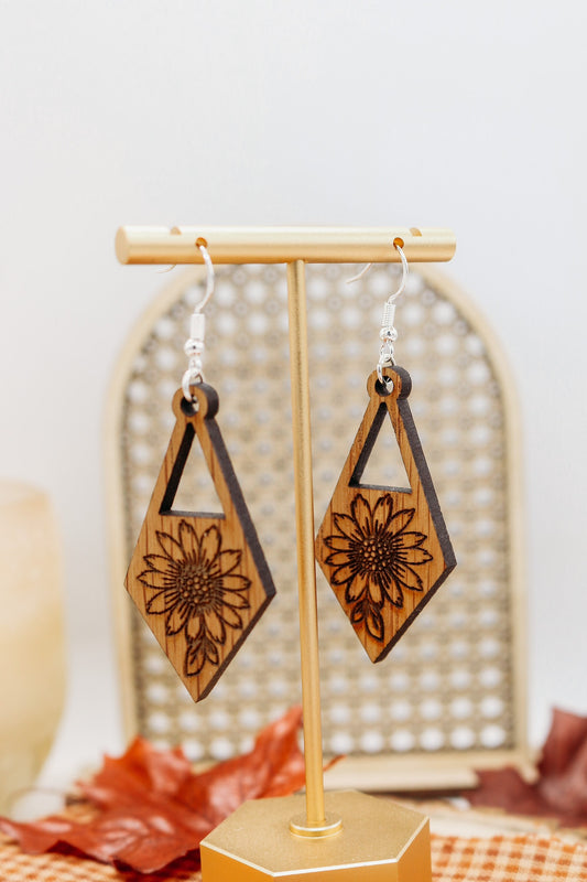 Abstract Sunflower Triangle Earrings | modern | boho jewelry