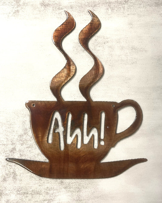Ahh! Coffee Cup - Metal Wall Art - Copper and Bronzed Plated available in 3 sizes