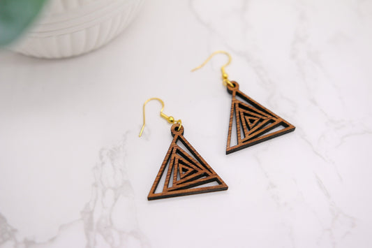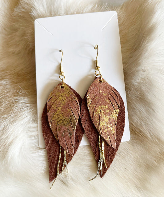 Glamorous Rustic Charm: Brown Metallic Gold Leather Layered Earrings with Gold Accents