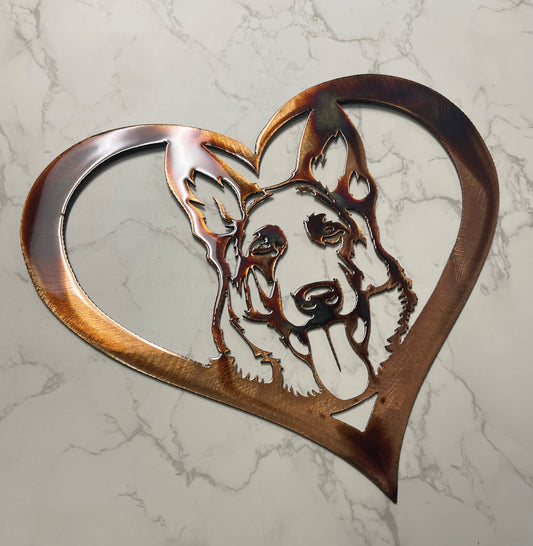 German Shepherd Silhouette Metal Wall Art - Handmade in the USA