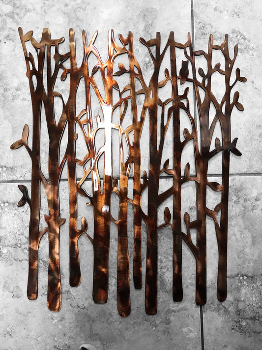 Gilded Tranquility: Birch Tree Metal Wall Art - 24" x 20" Copper Bronzed Plated