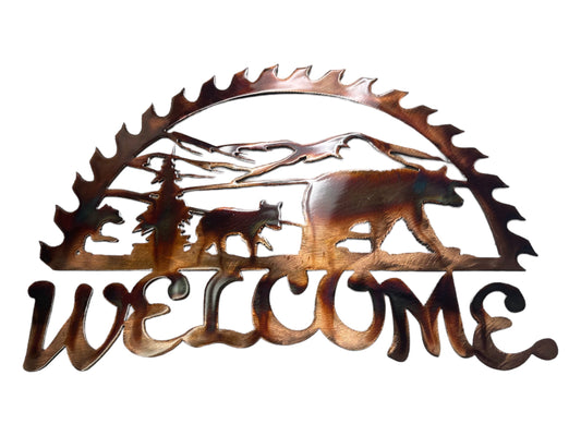 Half-Saw Bear" Metal Wall Art Welcome Decor - 18" W x 12" T - Copper/Bronze Finish