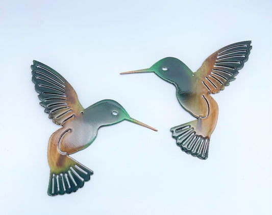 Hummingbird Autumn Green Pair Metal Wall Art Décor 6" x 6" each