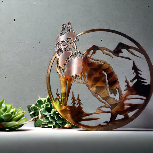 Howling Wolf Wildlife Metal Wall Art 18" x 15 1/2"