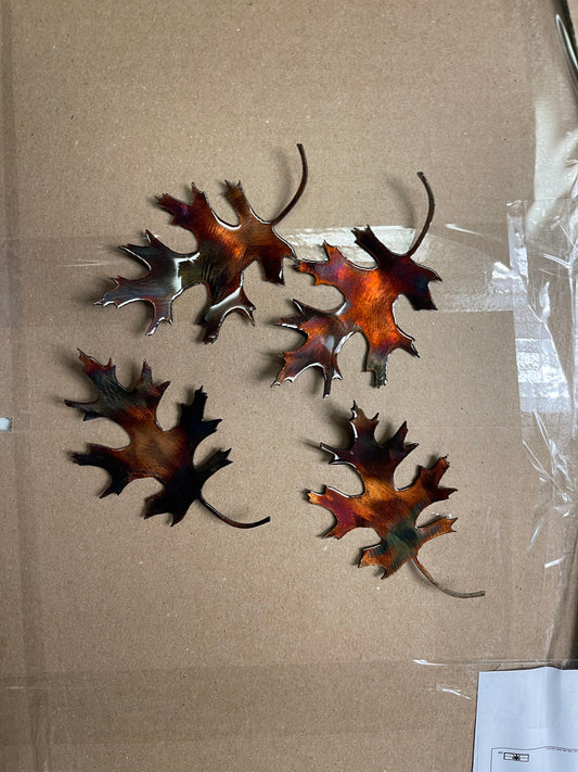 Handcrafted Metal Oak Leaves - Rustic Copper/Bronze Finish - Set of 4 - 5" Wide - Natural Look - Tabletop Décor
