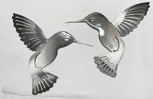 Hummingbird Pair Smoke Tinged Metal Wall Art Décor 6" x 6" each