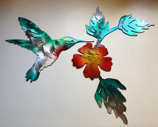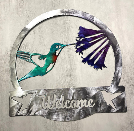 Hummingbird Welcome Sign 12 3/4" x 12 3/4" Colored Steel