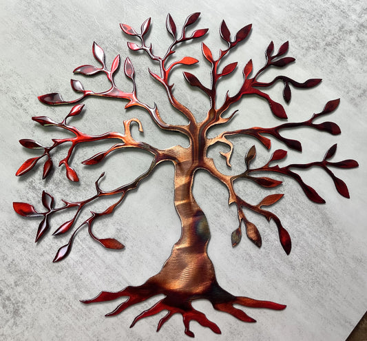Olive Tree Metal Wall Art Seasons of Color (Red Tinged)