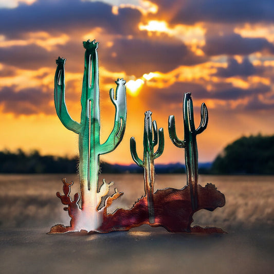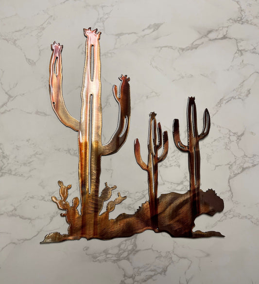 Arizona Cactus Trio Metal Wall Art Copper and Green Tinged