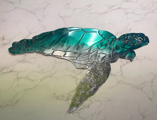 Aquatic Sea Turtle Metal Décor Wall Art Accent Teal Tainted finish