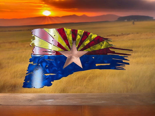 Patriotic Tattered Arizona Flag, Metal Art, Metal Wall Art, Home Decor, Metal Wall Decor, USA, Steel Flag, Military 22 1/2" Wide or Larger