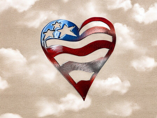 Patriotic Heart Metal Wall Art - Polished Steel with Red & Blue Tinge - Available in 2 Sizes
