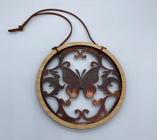 Rustic Wood and Butterfly Metal Wall Accent or Sun Catcher Copper Plated