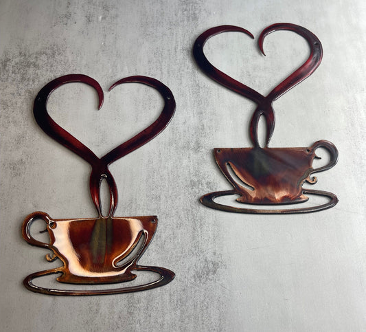 Steamed with Love Coffee Cup Copper and Bronzed Red Mirrored Pair 9 3/4" x 6 1/2"ea