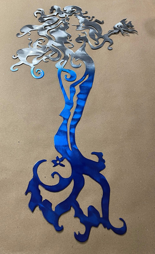 Tall Mermaid with a Fish - Metal Wall Art Blue Tinged