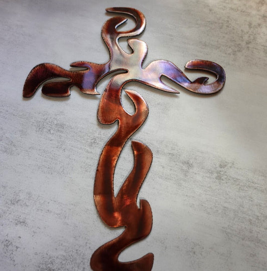 Wavy Cross Metal Wall Decor 12" or 15" tall