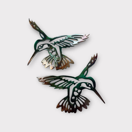 Tropical Hummingbird Pair Autumn Green Metal Wall Art Décor 8 1/2" x 6 1/4" each