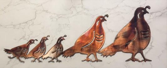 Arizona Quail Family - Metal Wall Art - Copper 17" x 7" or larger