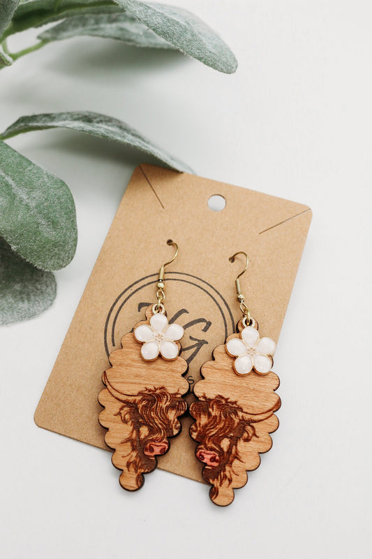 Cowtastically Charming: Highland Cow & Floral Delight Dangle Earrings