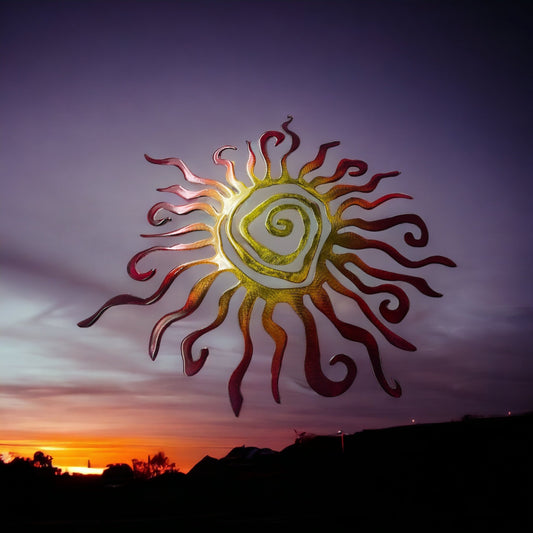 Fiery Southwestern Spiral Sun Metal Wall Art Fire Painted finish