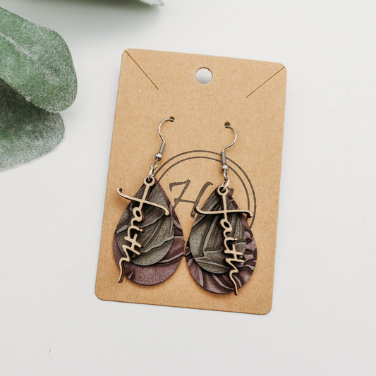 Faithful Cross Charms: Dangle Earrings with Faux Leather Backing