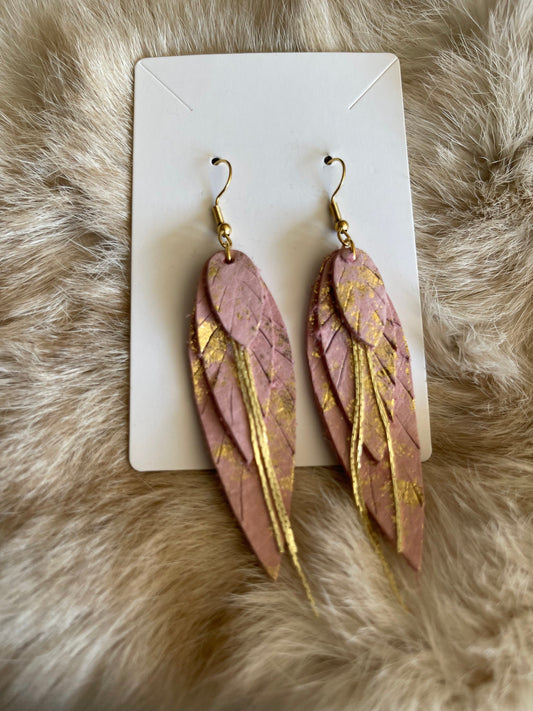 Feathered Pretty in Pink: Layered Feathered Genuine Leather Earrings
