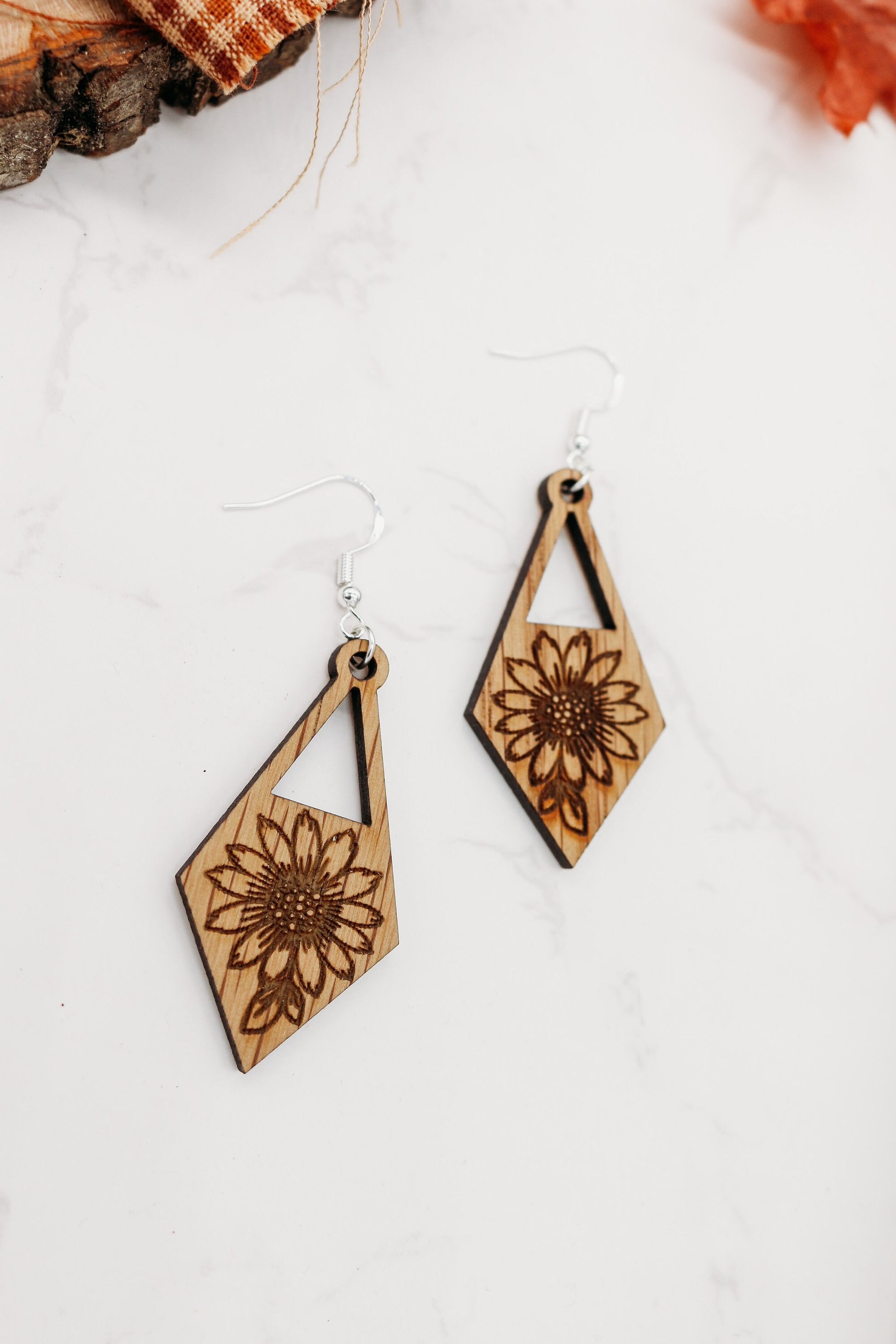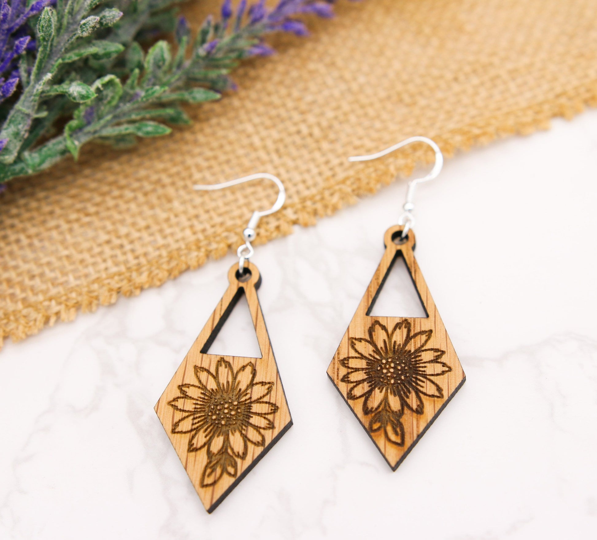 Abstract Sunflower Triangle Earrings | modern | boho jewelry