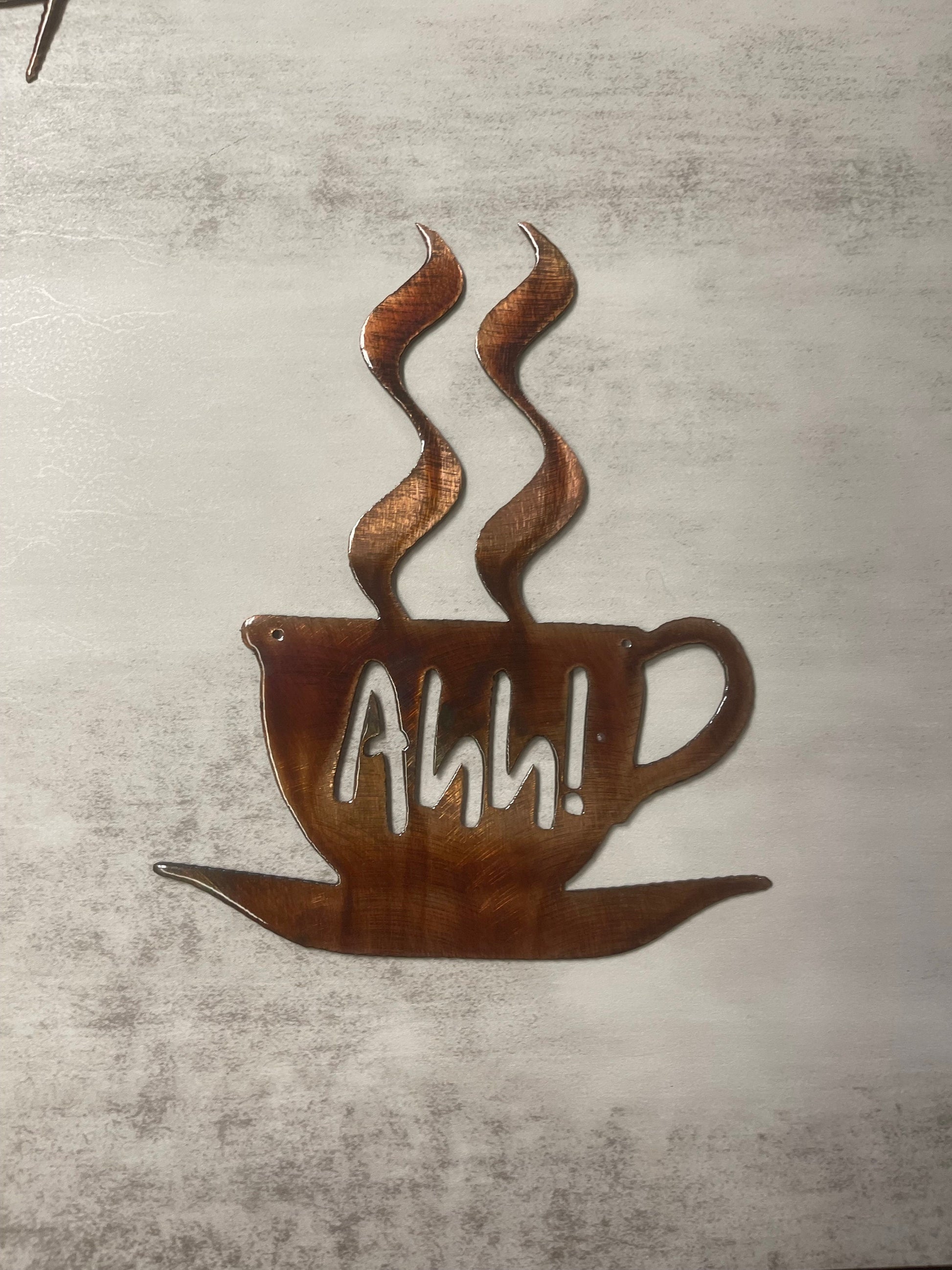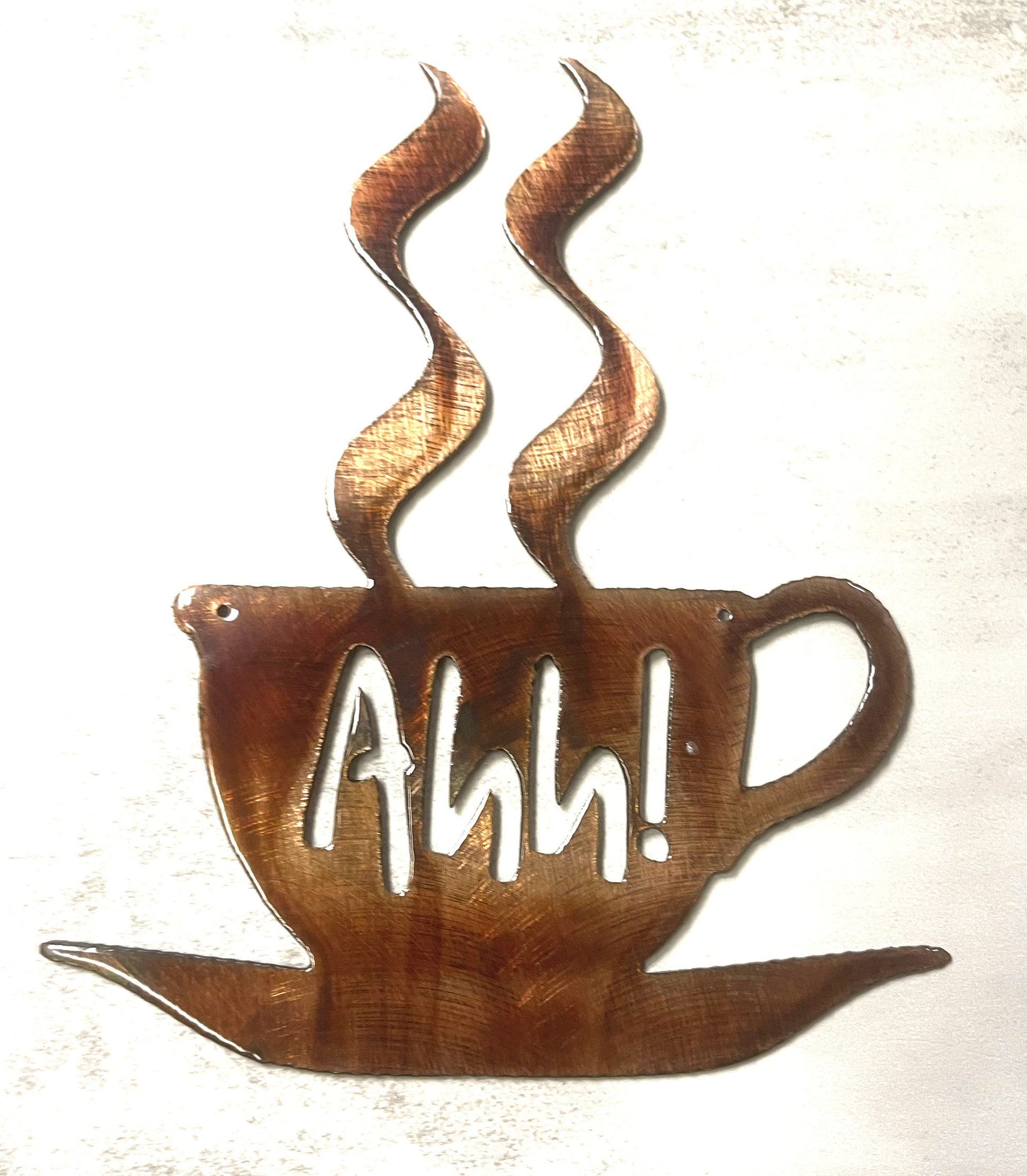 Ahh! Coffee Cup - Metal Wall Art - Copper and Bronzed Plated available in 3 sizes