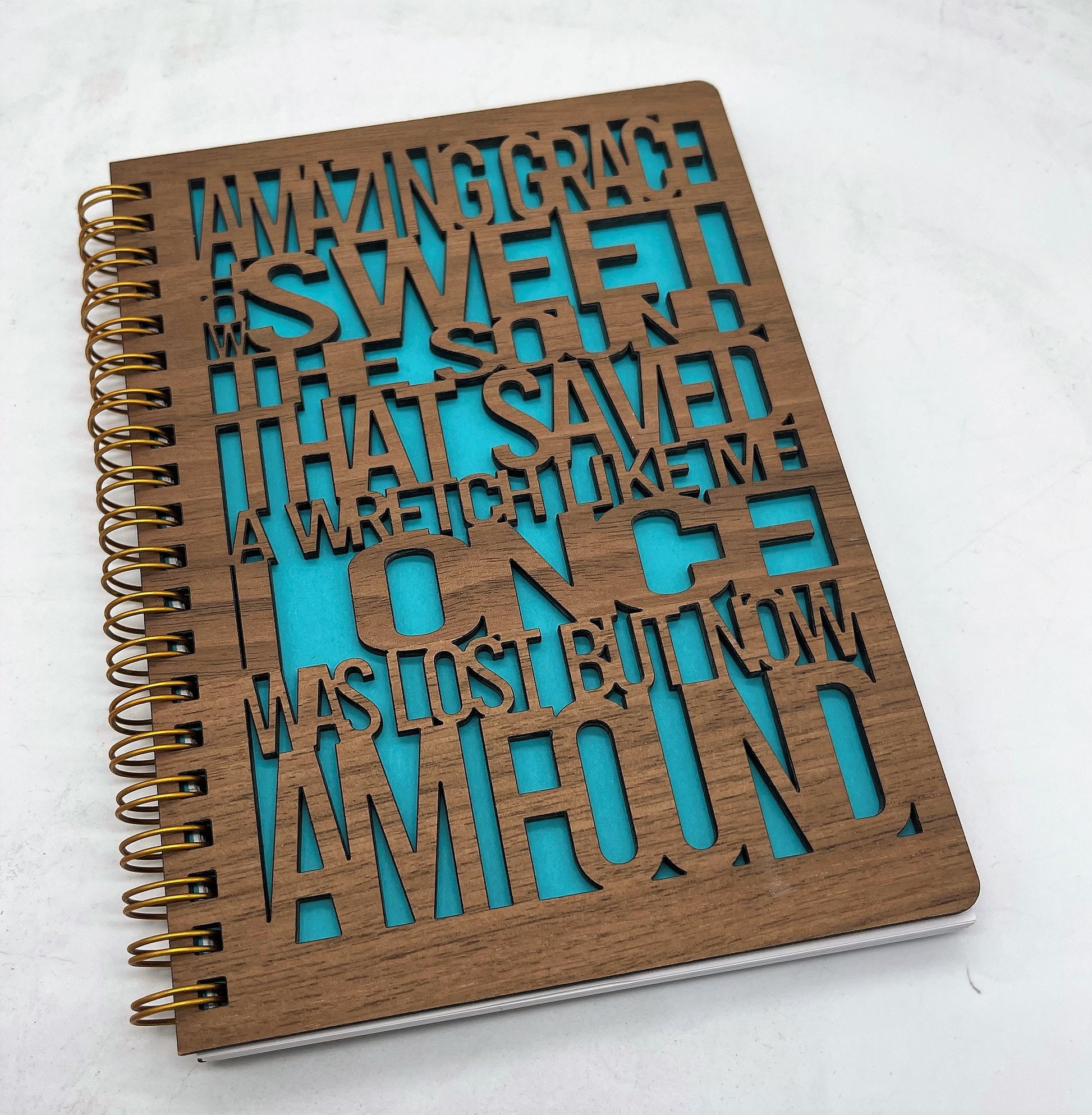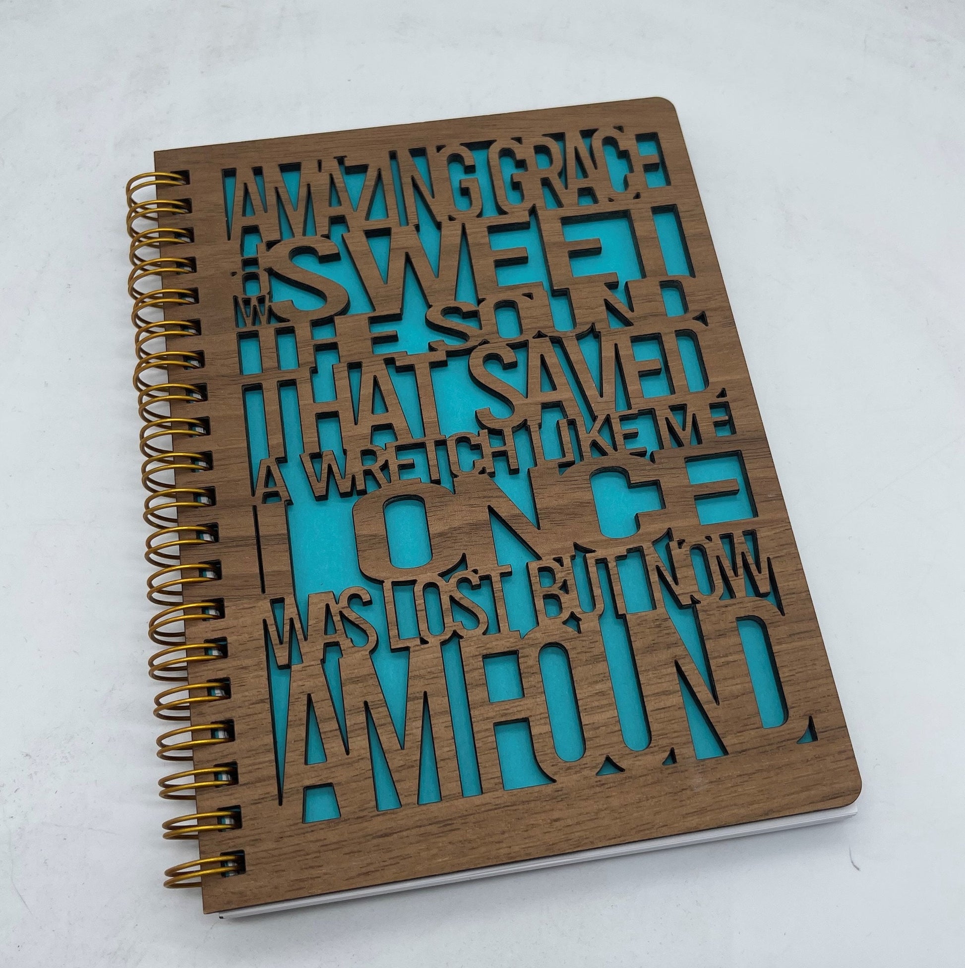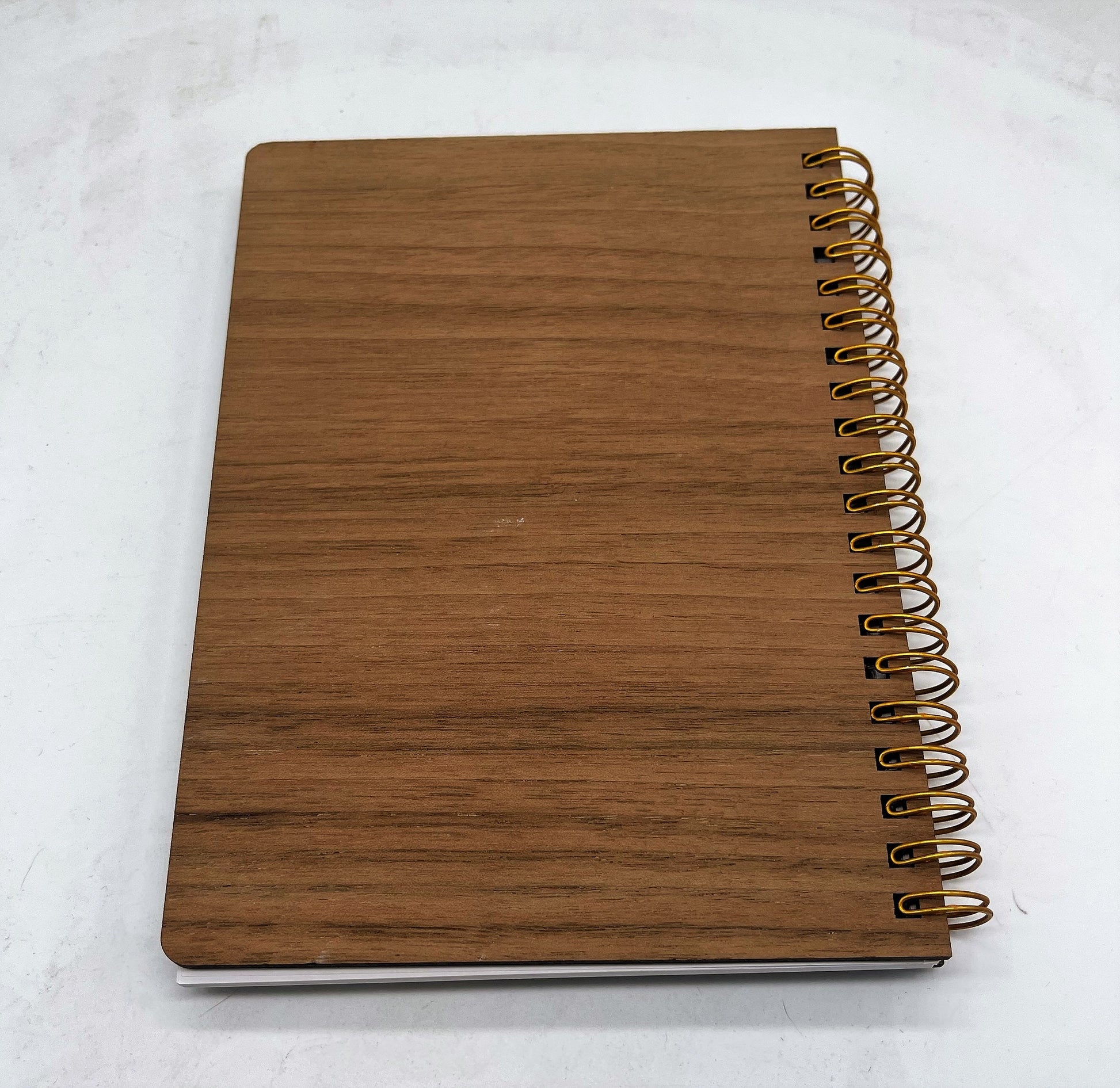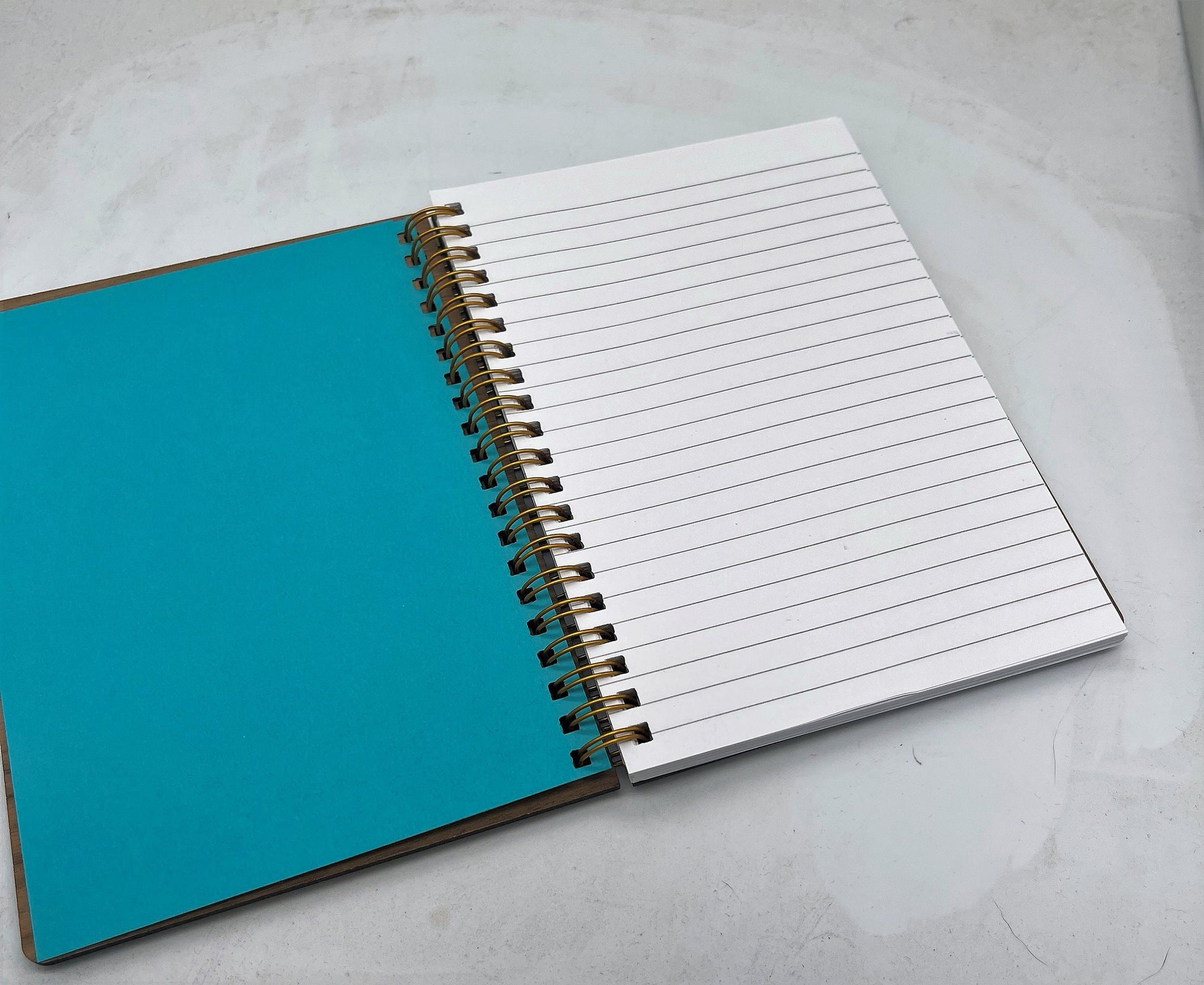 A custom handmade journal featuring a wood cover, beautiful accent page of acid free paper and 65 sheets of lined writing paper to capture all your thoughts, dreams, ideas, doodles, drawings, and more! Measures 5" x 7"