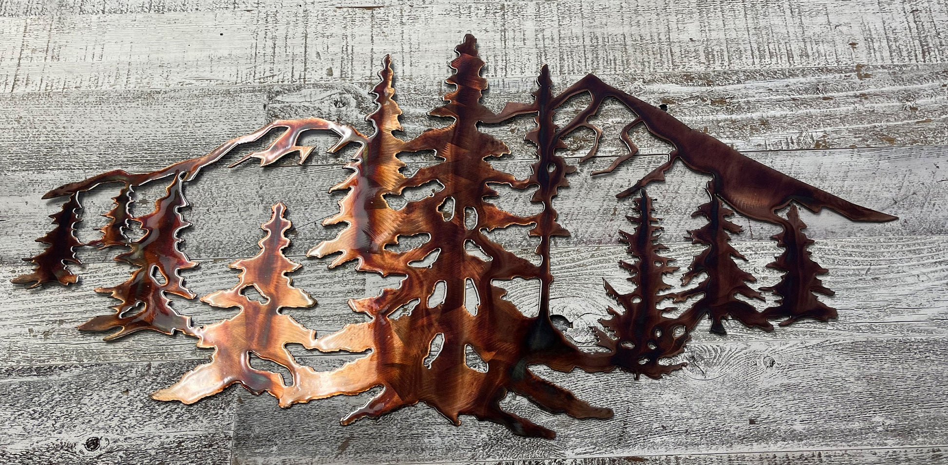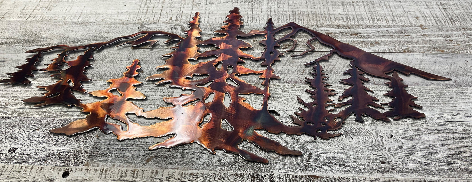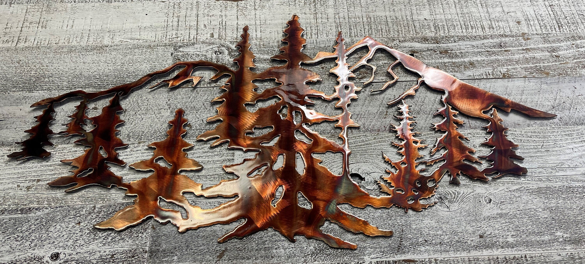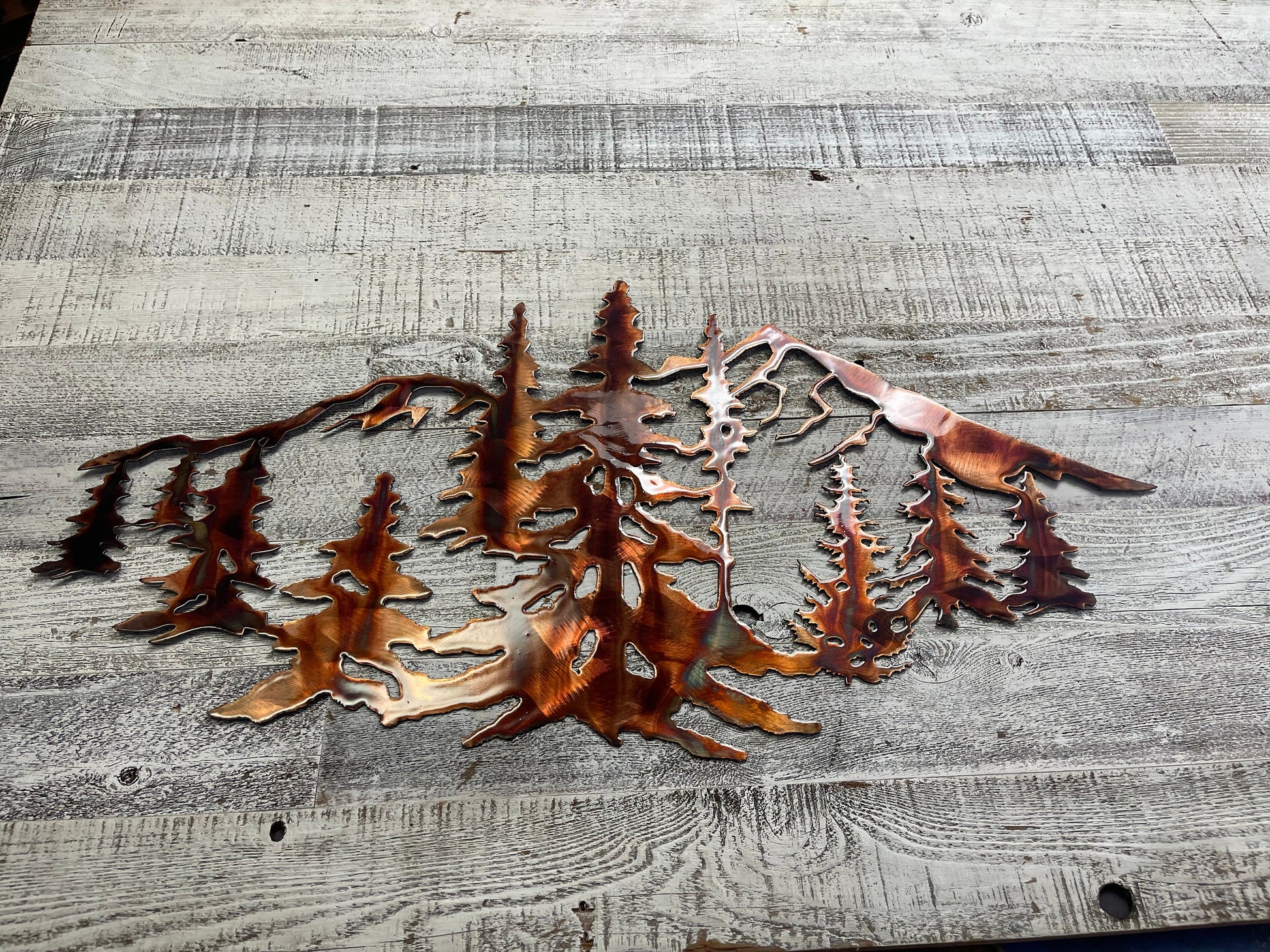 Created to celebrate the love of the mountains in Arizona. This handcrafted piece will enhance any bedroom, living room, home office, and more. This piece is 100% handcrafted in the USA. Finish: Copper/Bronzed Plated with a clear coat. Approx measurements: 25 1/2" w x 12 3/4" h is our smallest 2 additional sizes to choose from. Note: Bracket welded to back for ease of hanging.