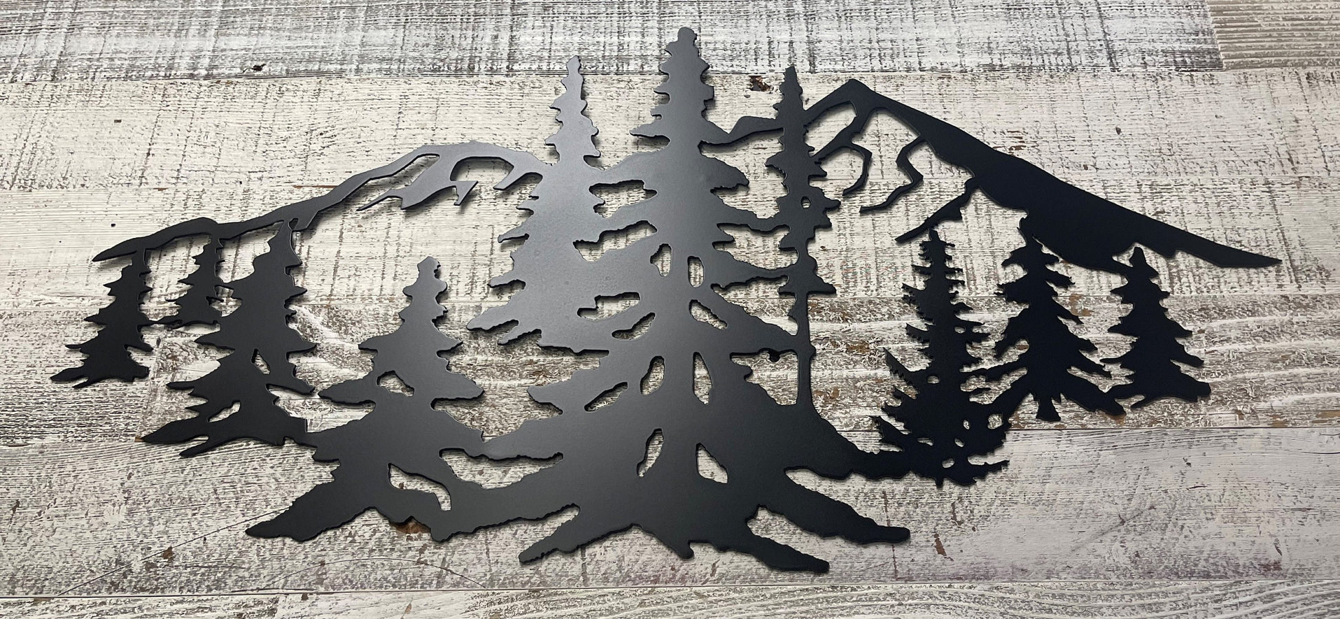 Created to celebrate the love of the mountains in Arizona. This handcrafted piece will enhance any bedroom, living room, home office, and more. This piece is 100% handcrafted in the USA. Finish: Satin Black Painted Finish Approx measurements: 25 1/2" w x 12 3/4" h is our smallest 2 additional sizes to choose from. Note: Bracket welded to back for ease of hanging.