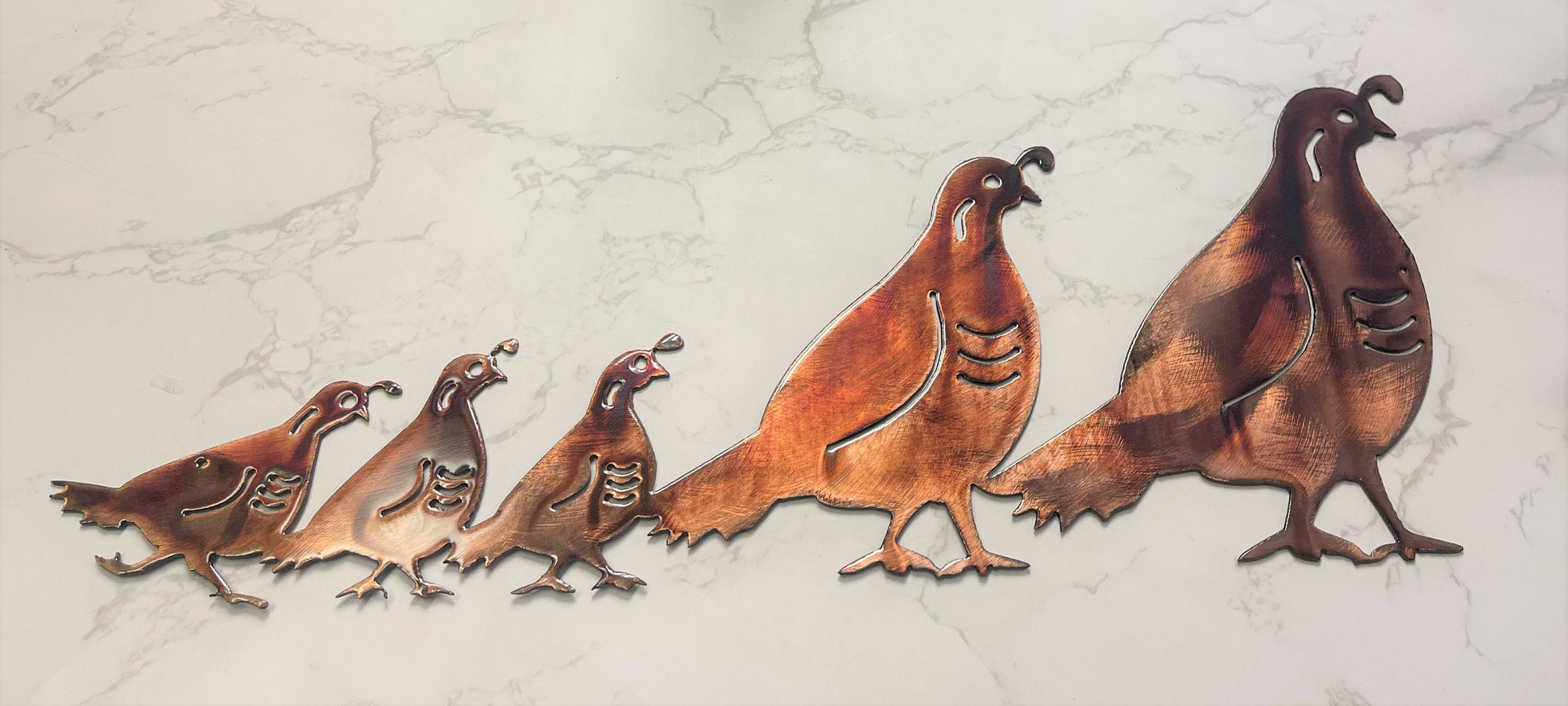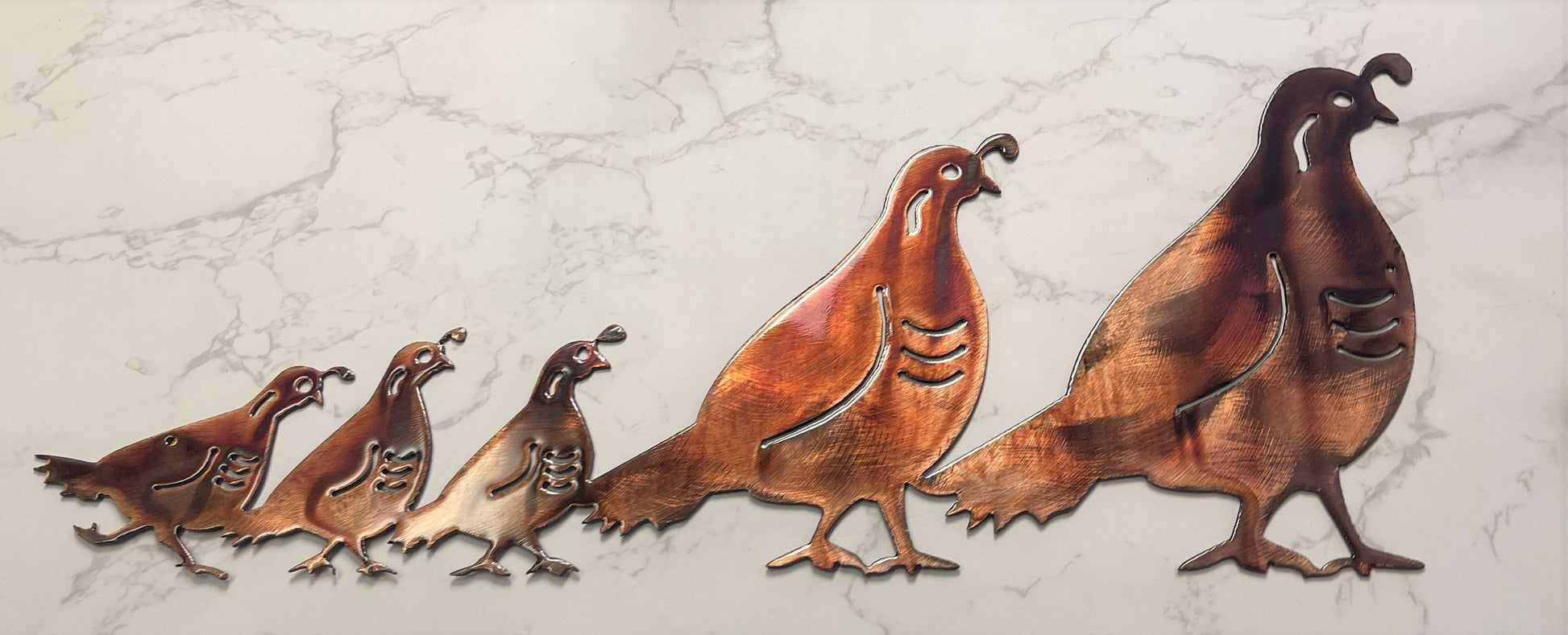 Arizona Quail Family - Metal Wall Art - Copper 17" x 7" or larger