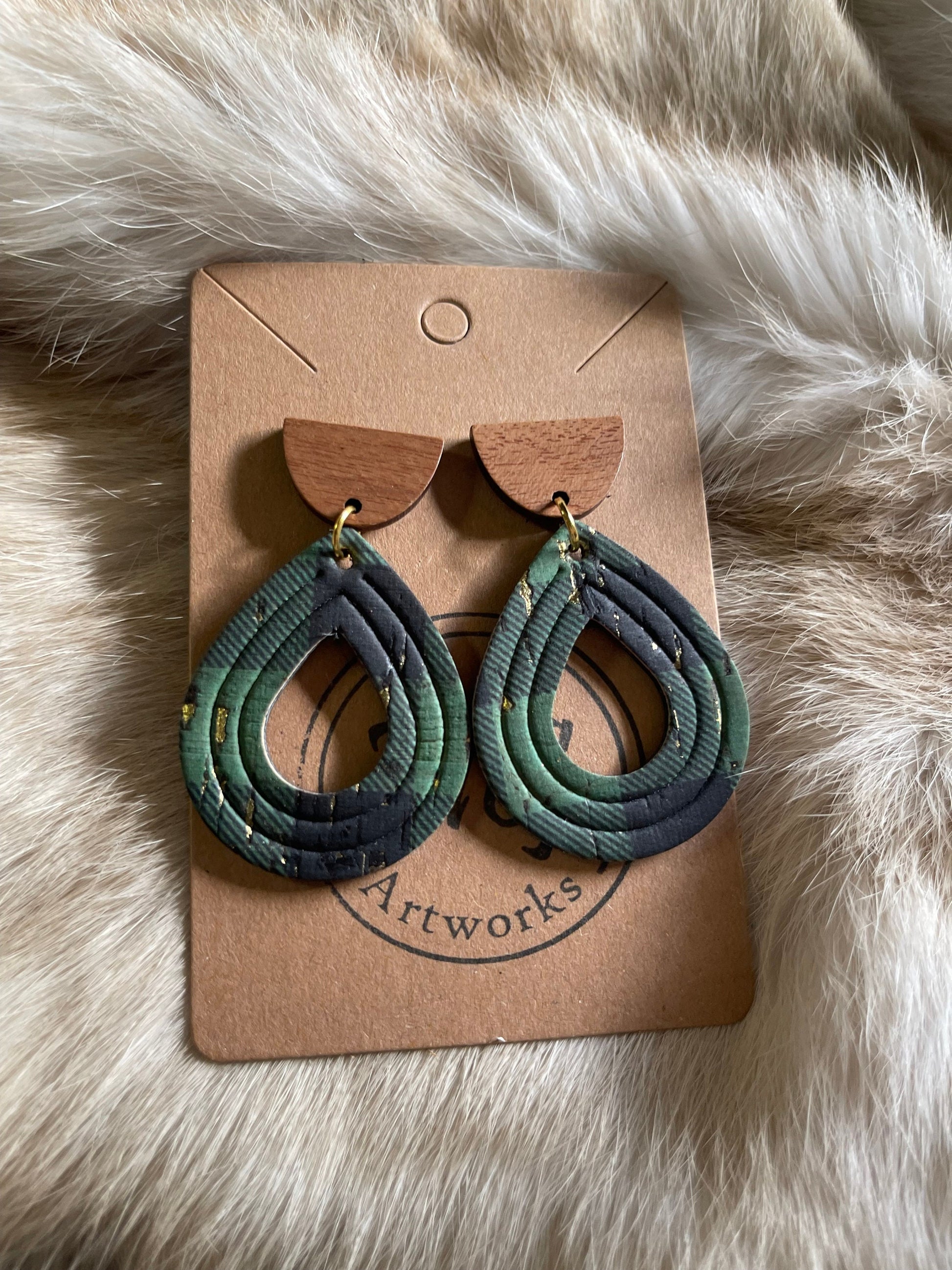 Buffalo Breeze Wooden and Leather backed Cork Dangle Earrings
