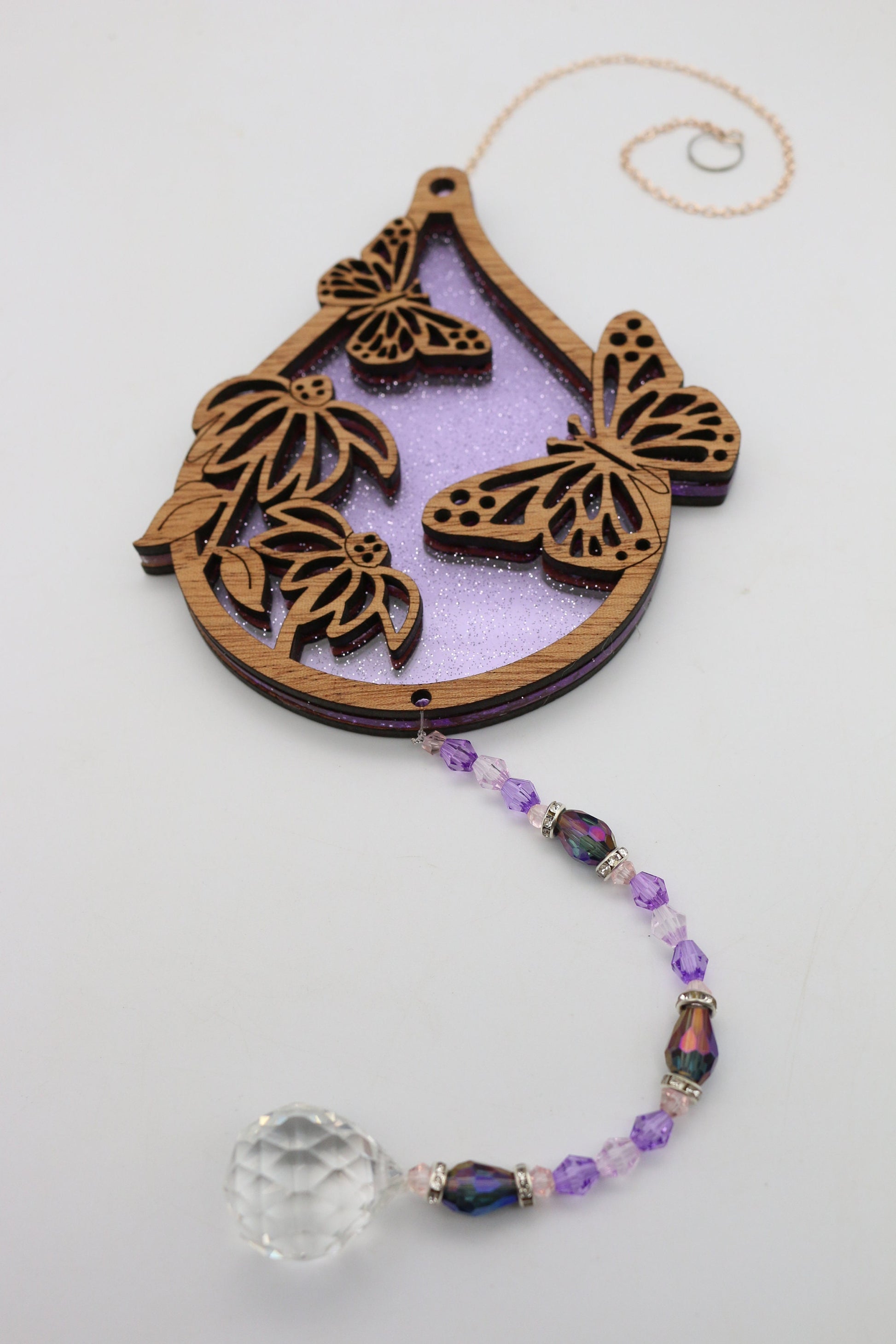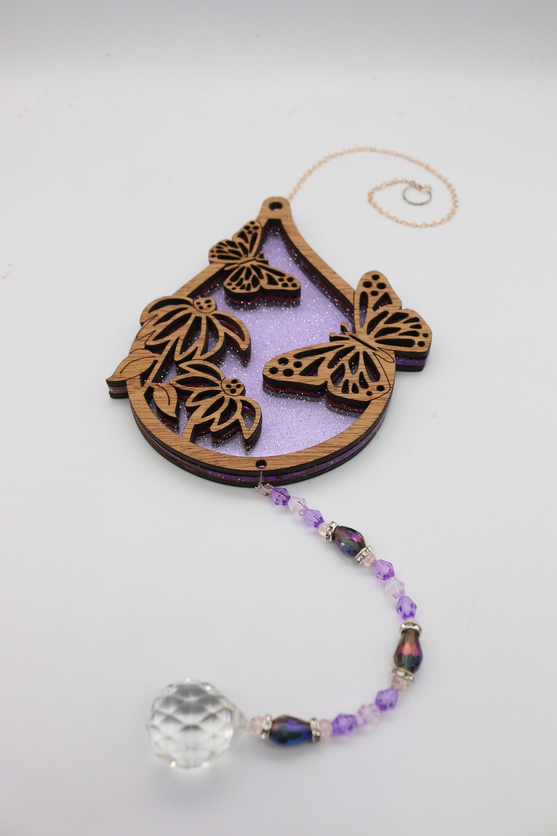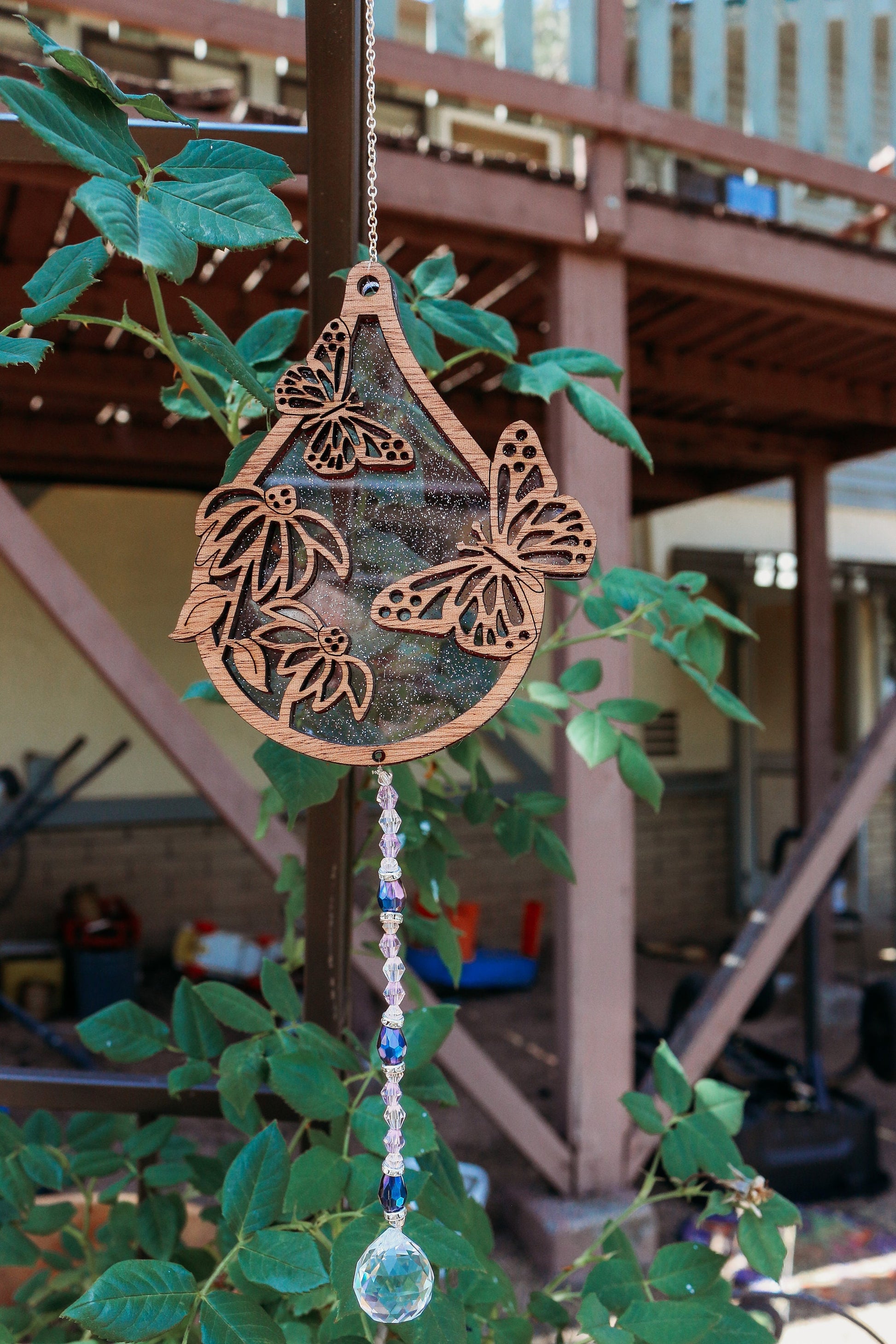 Introducing the Butterfly and Floral Globe Suncatcher, a mesmerizing piece of art that combines the delicate beauty of hummingbirds and flowers in a captivating globe shape. This exquisite suncatcher will add a touch of whimsy and elegance to any space, enchanting all who lay eyes upon it.