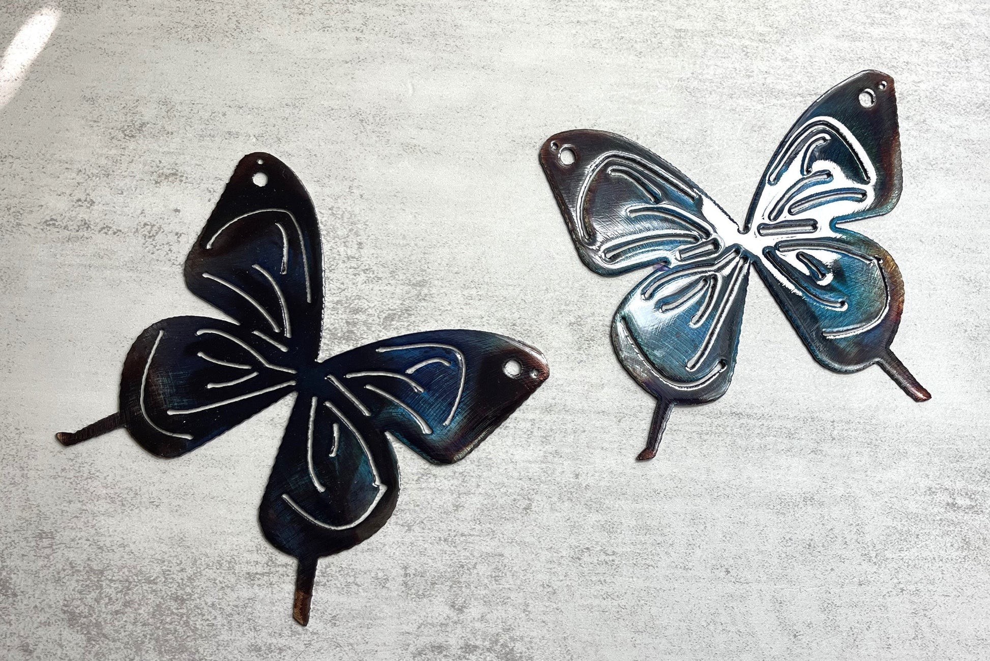 Butterfly Royal Blue Pair Metal Wall Art Décor 6" x 6" each