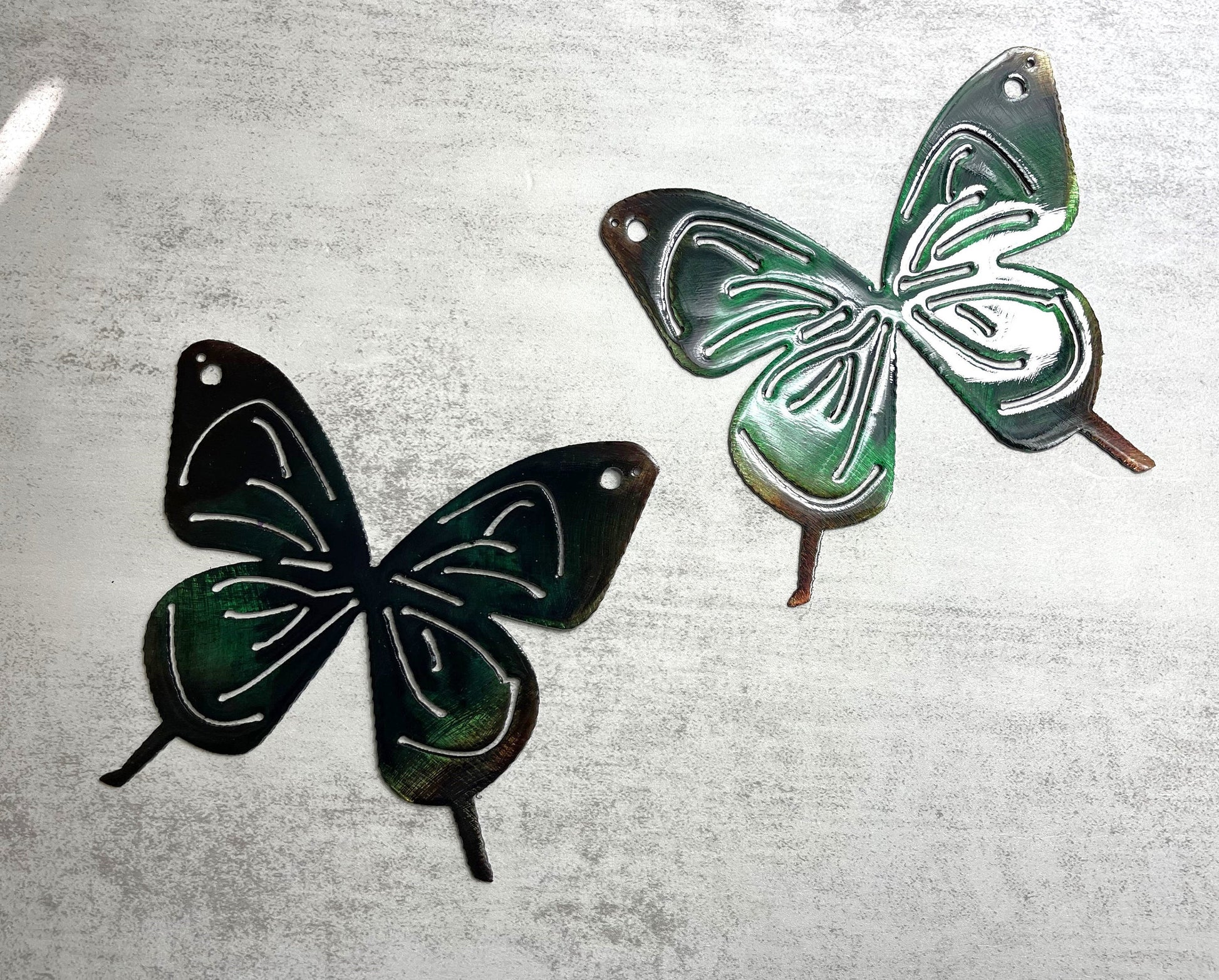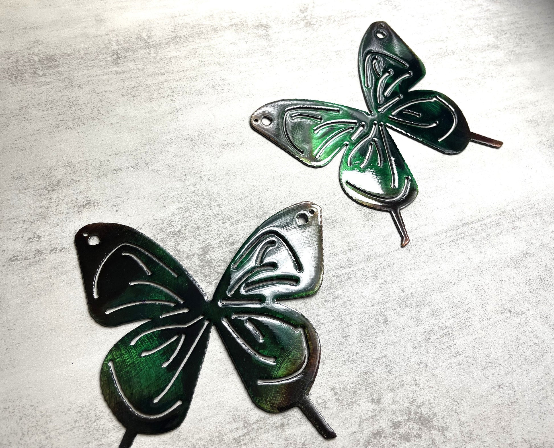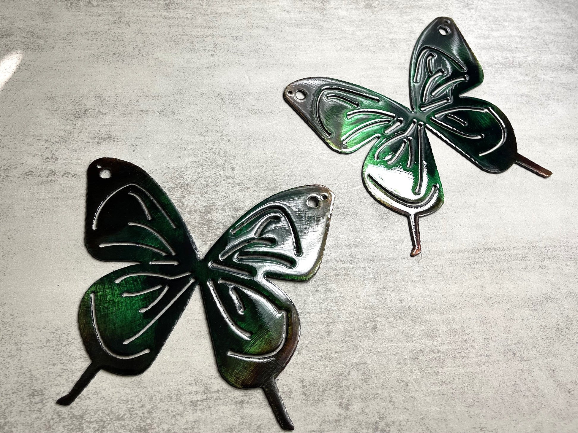 Butterfly Royal Green Pair Metal Wall Art Décor 6" x 6" each