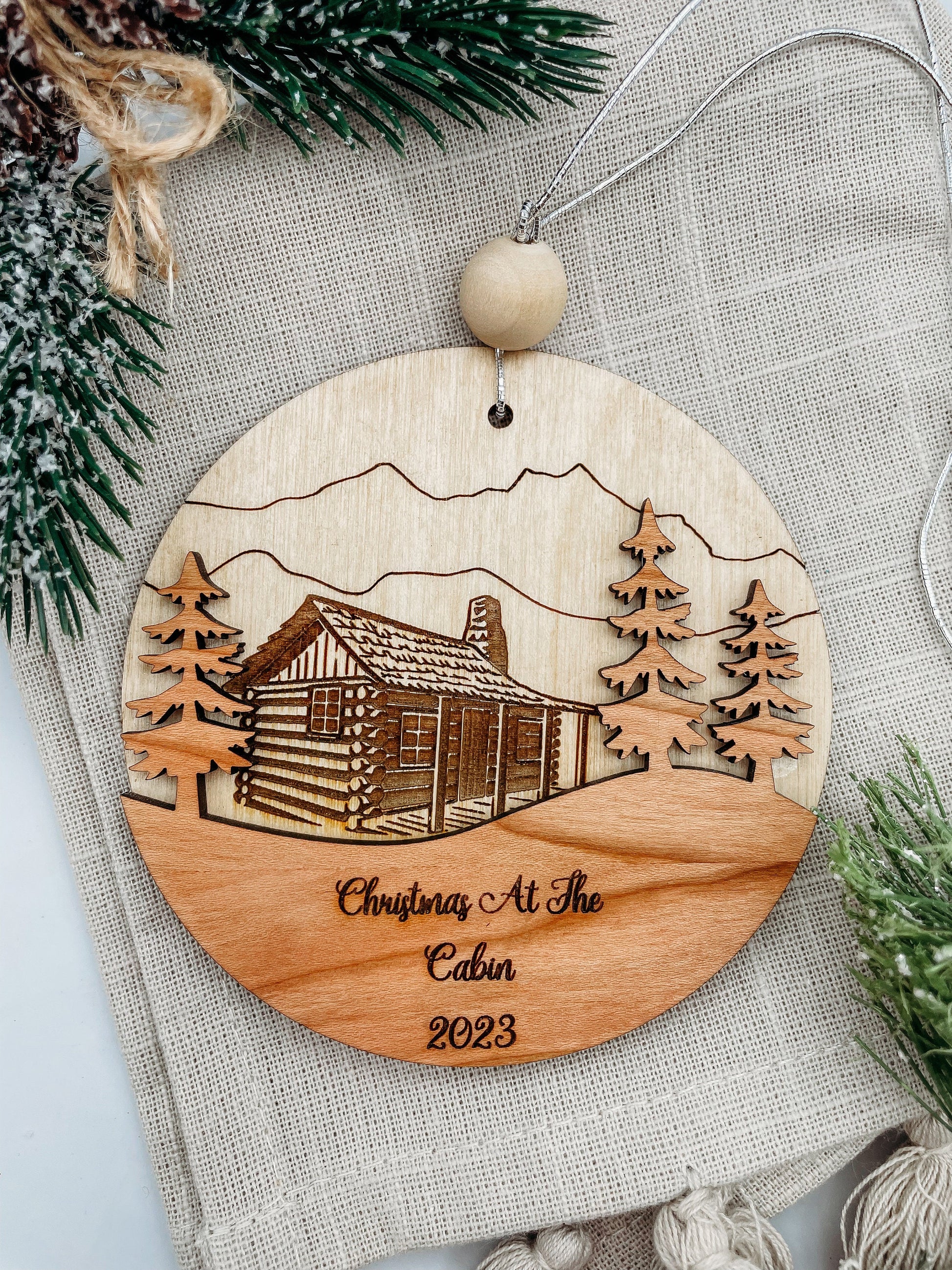 Christmas at the Cabin - personalized 2023 Christmas Ornament