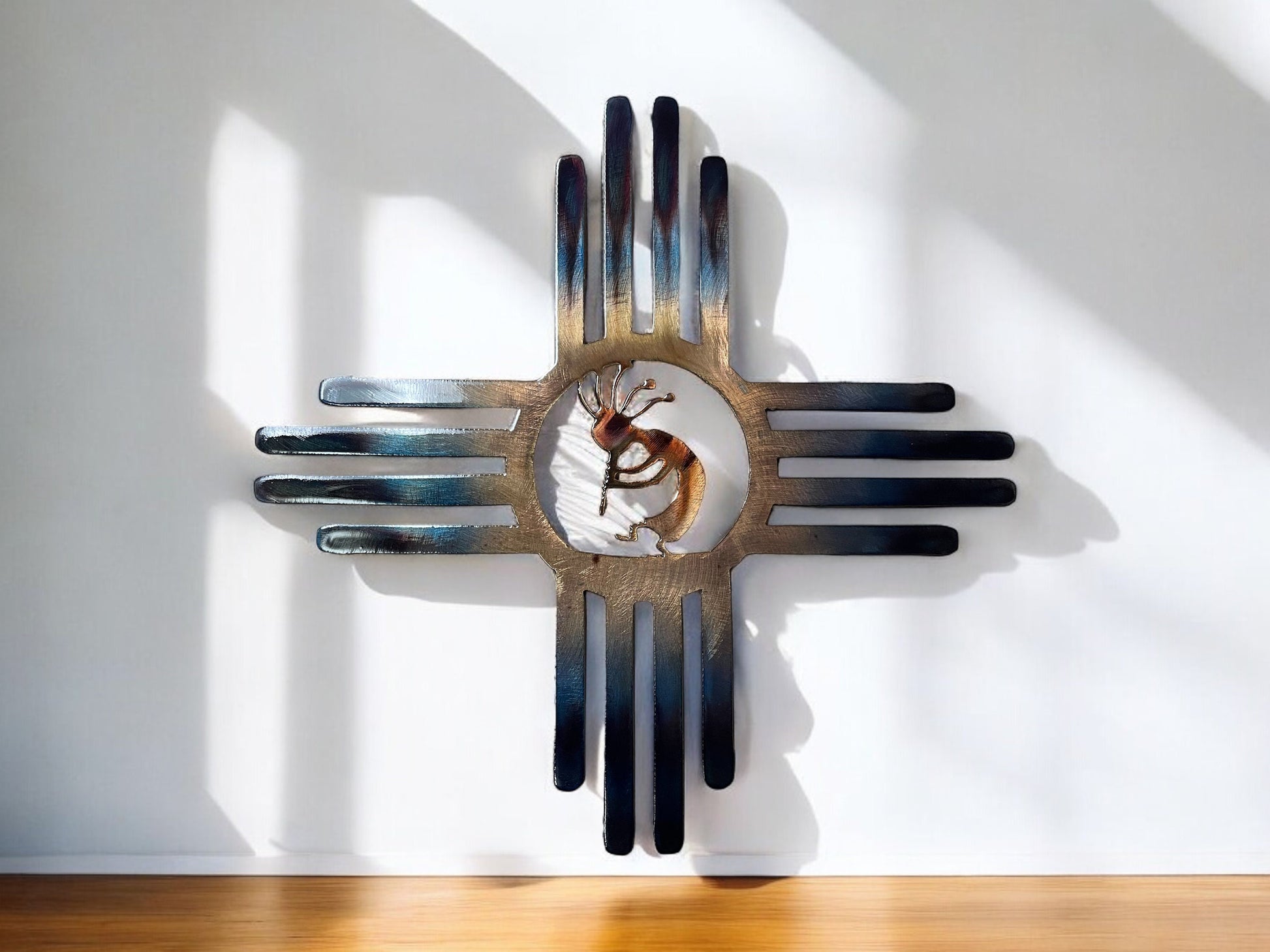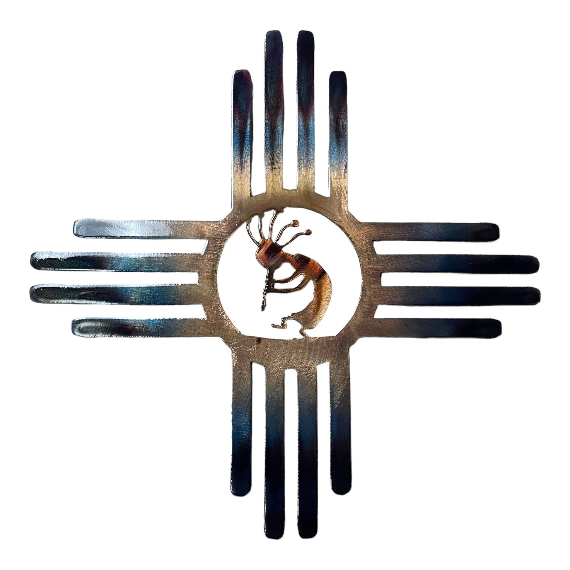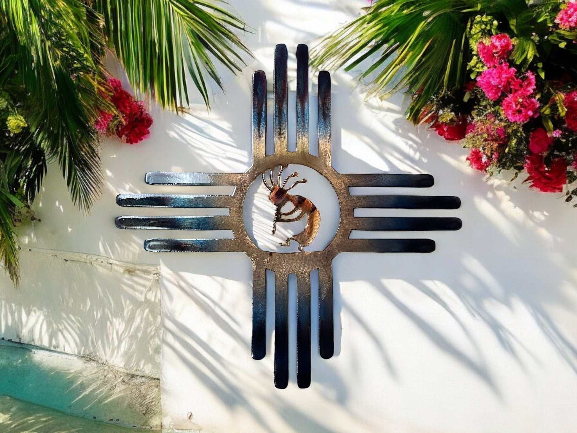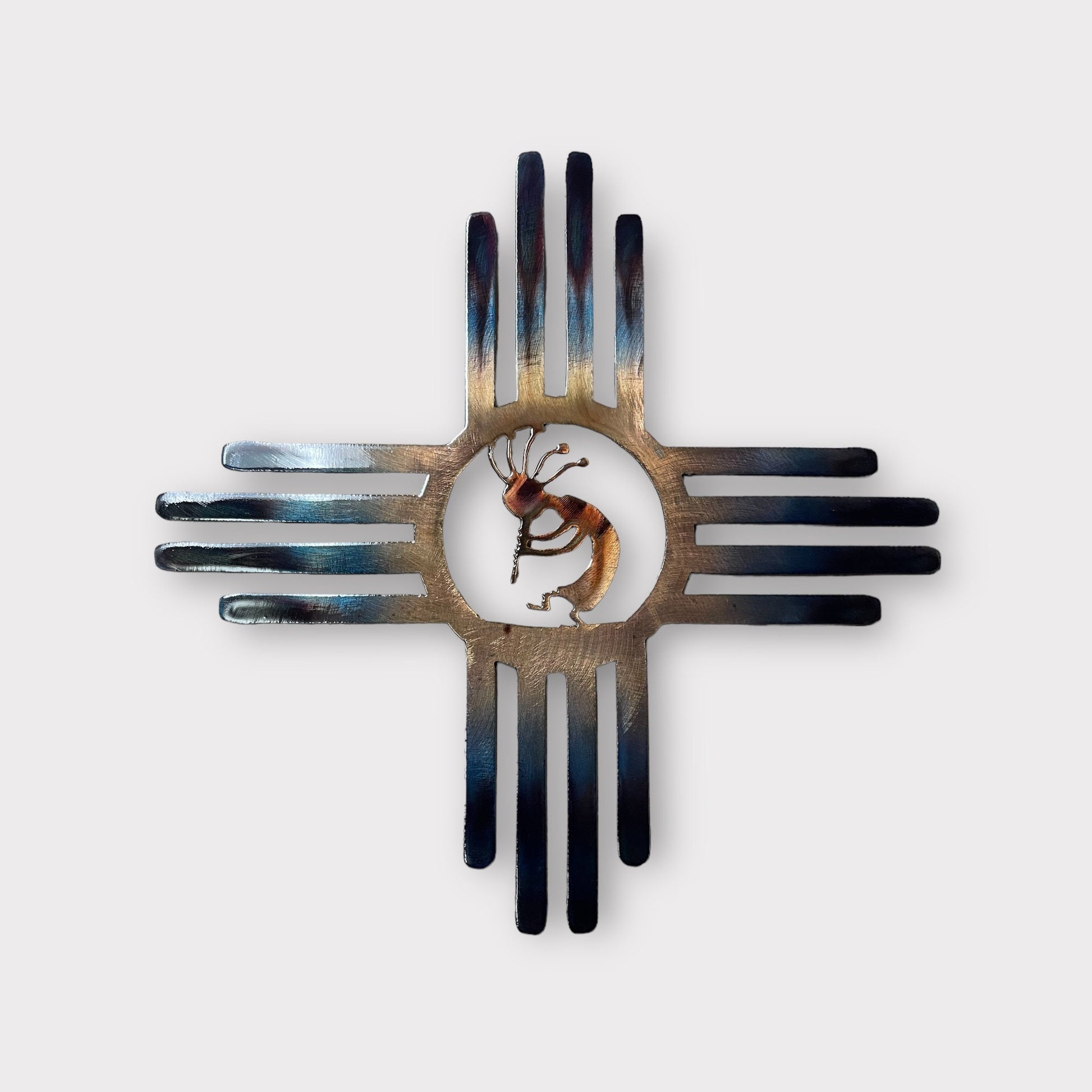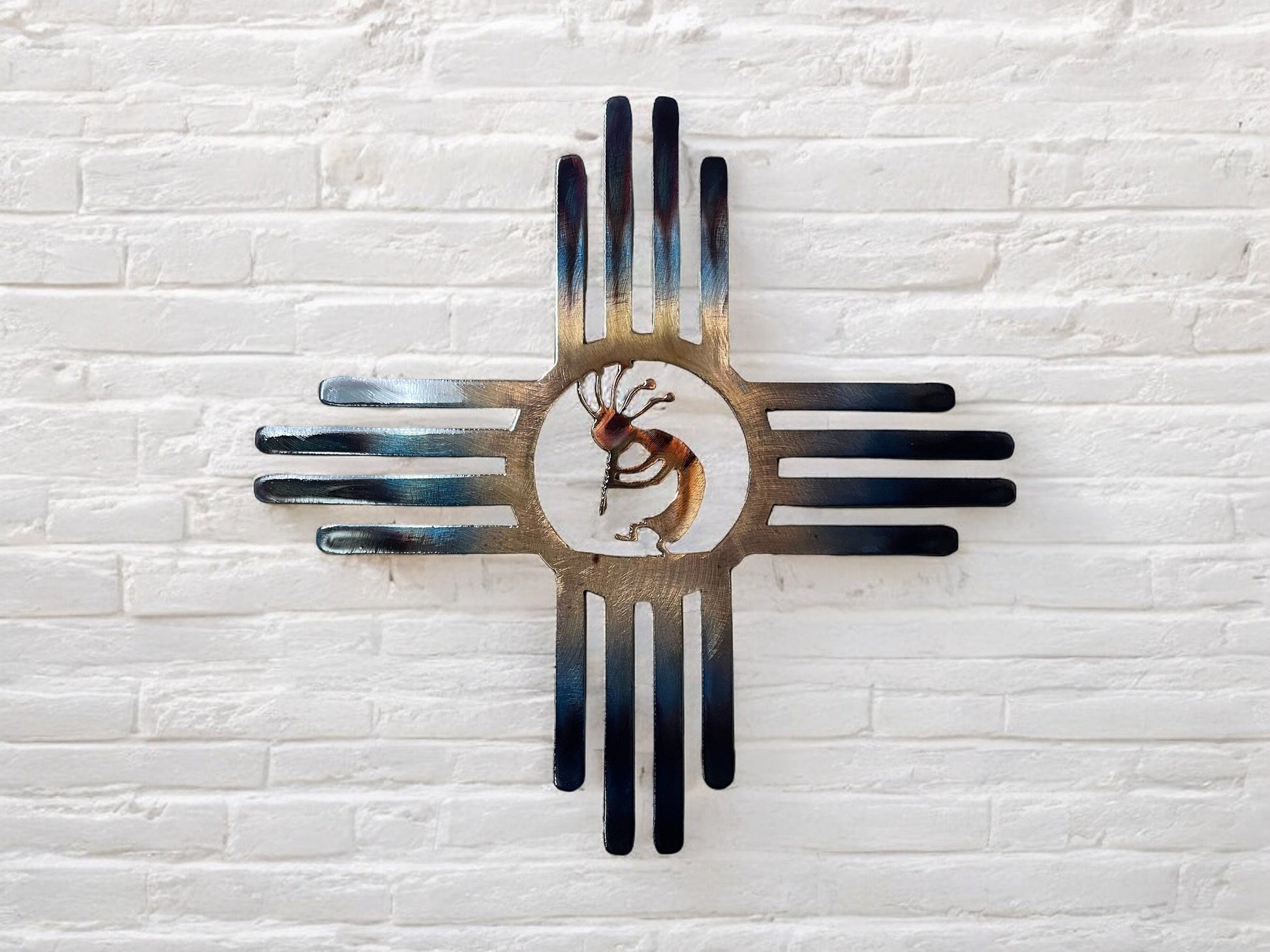 Add a bit of southwest flair to your home or office with this handcrafted piece featuring a Zia with the classic Kokopelli depicted in the middle. This piece will brighten up any room to display your culture in a tasteful and beautiful way.