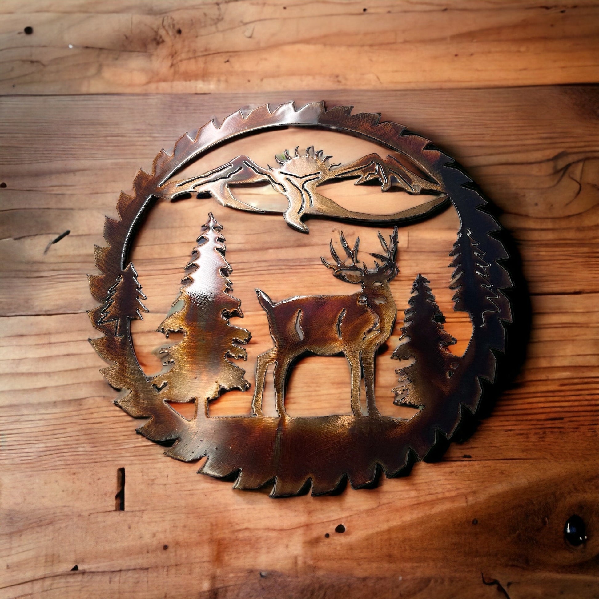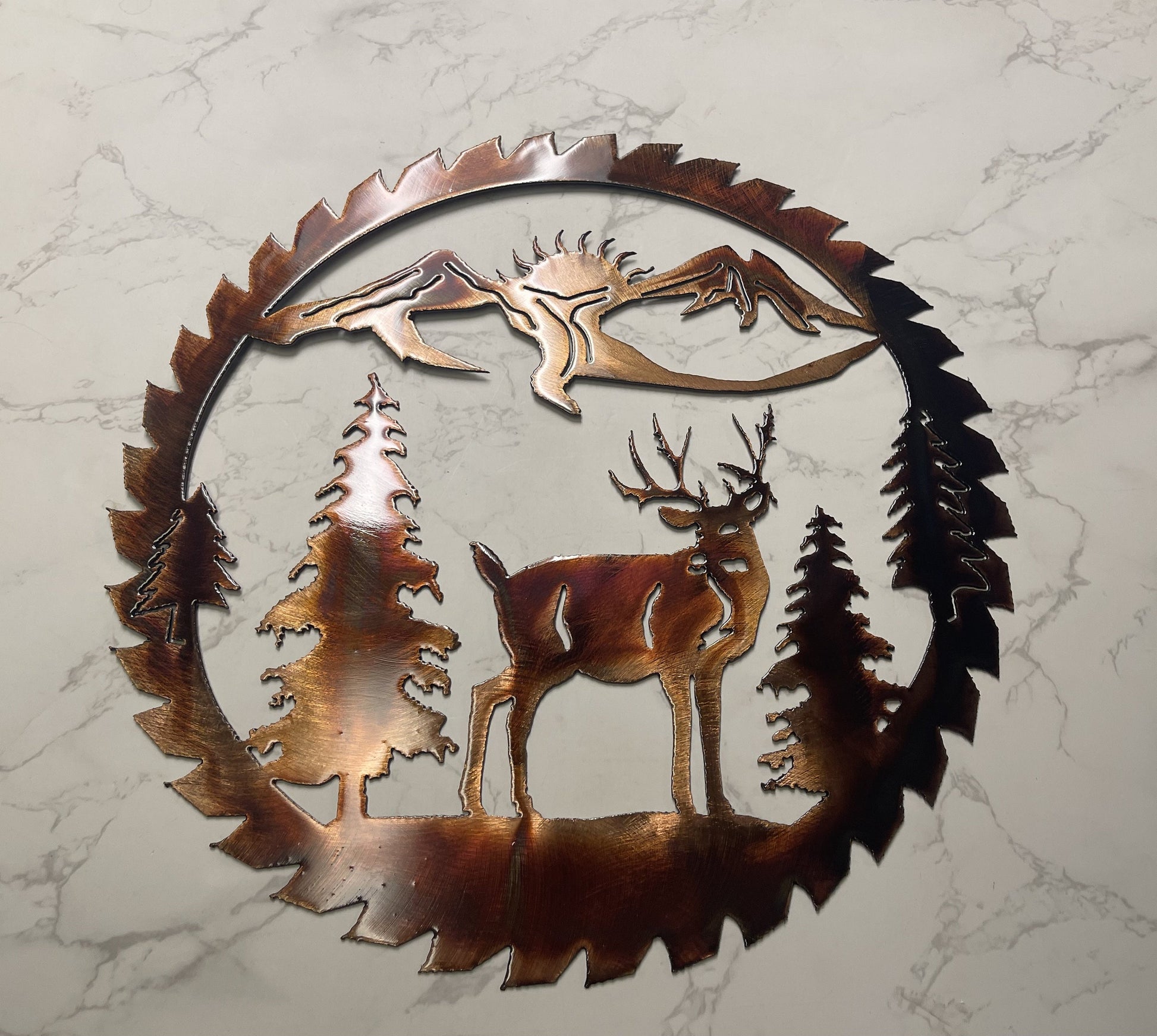 Bring the allure of nature indoors with the captivating Deer Mountain Saw Blade Metal Art. Add a touch of wilderness to your home decor today!
