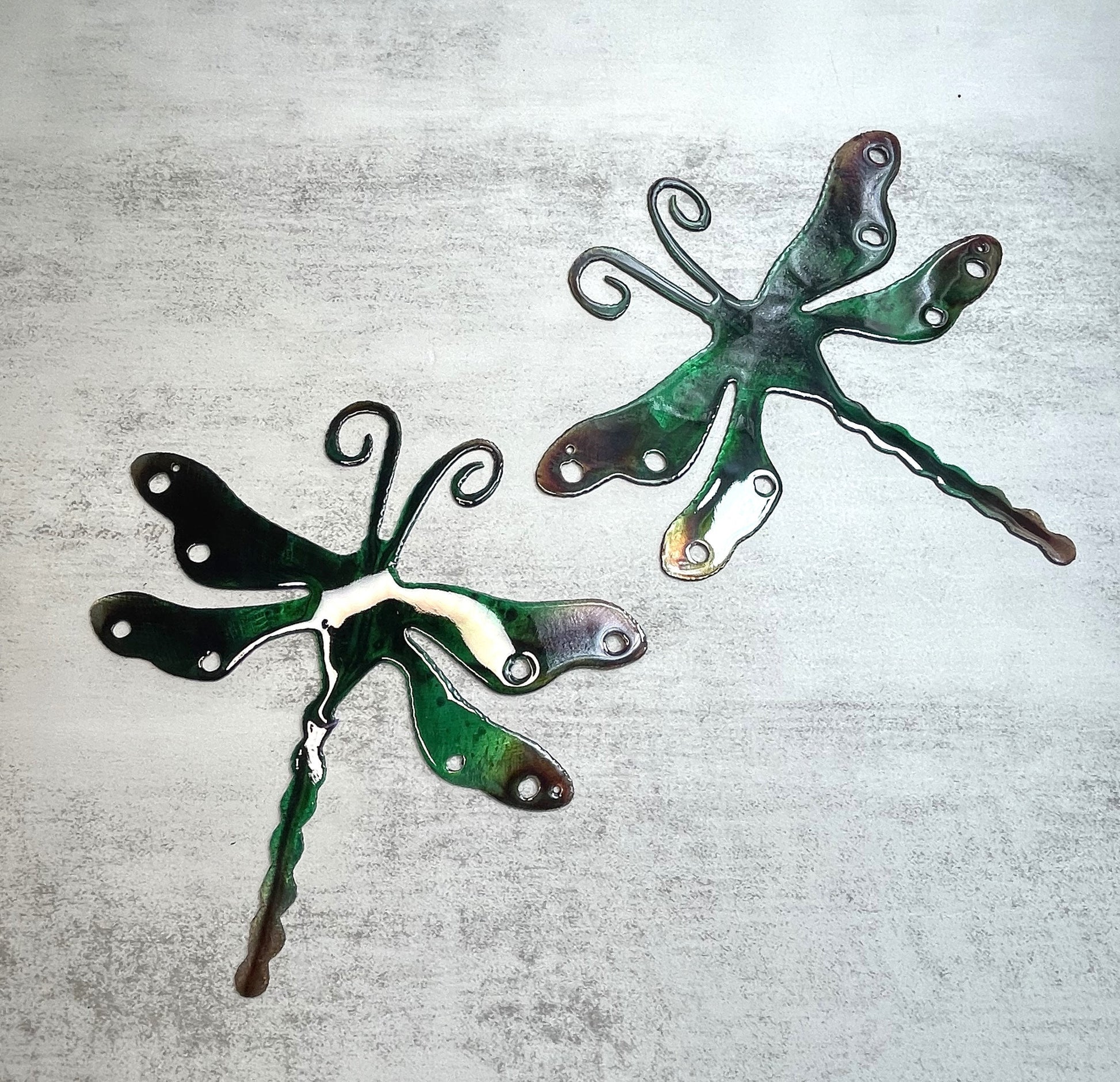Dragonfly Metal Wall Art Decor in Our Royal Green Finish 7" x 6 3/4" Each