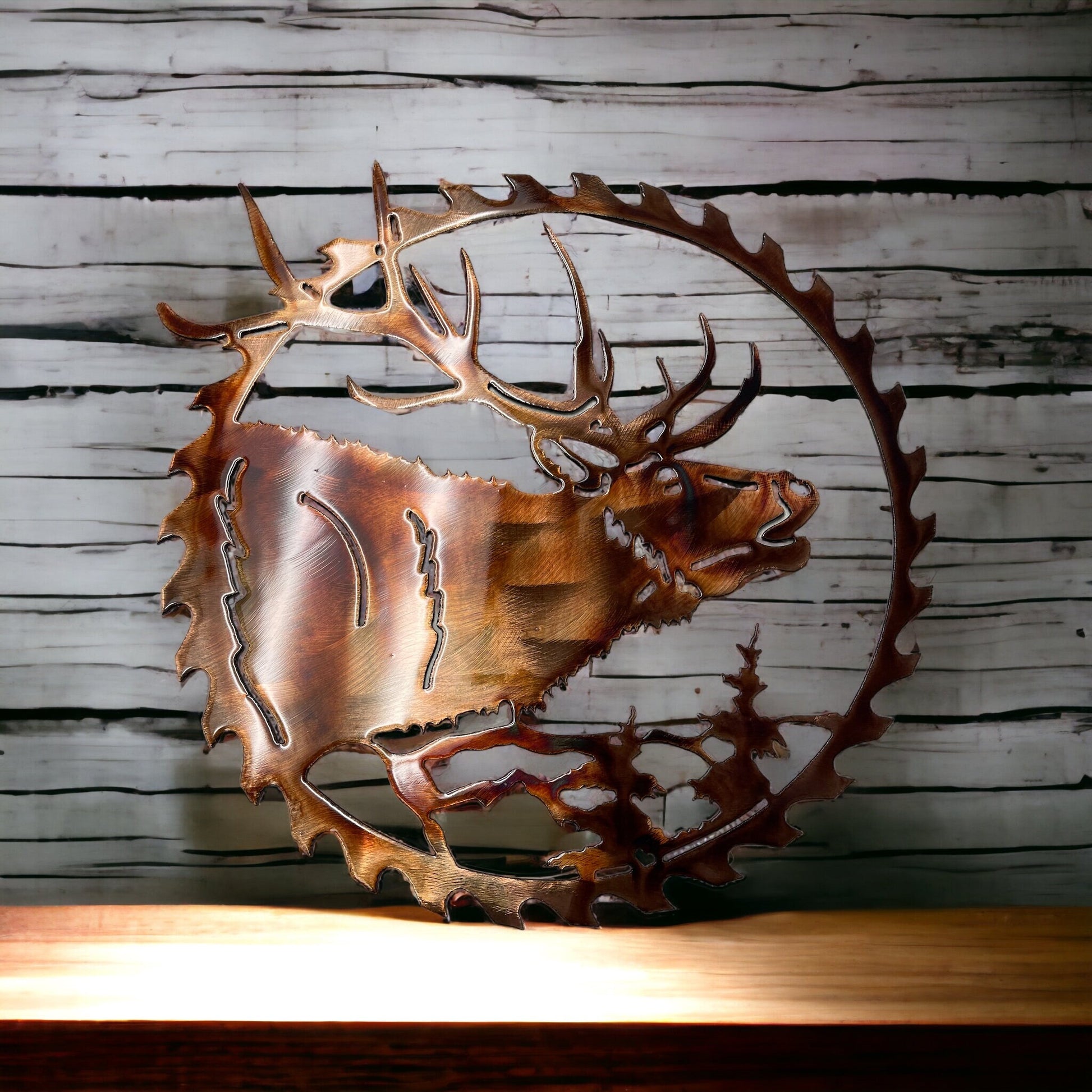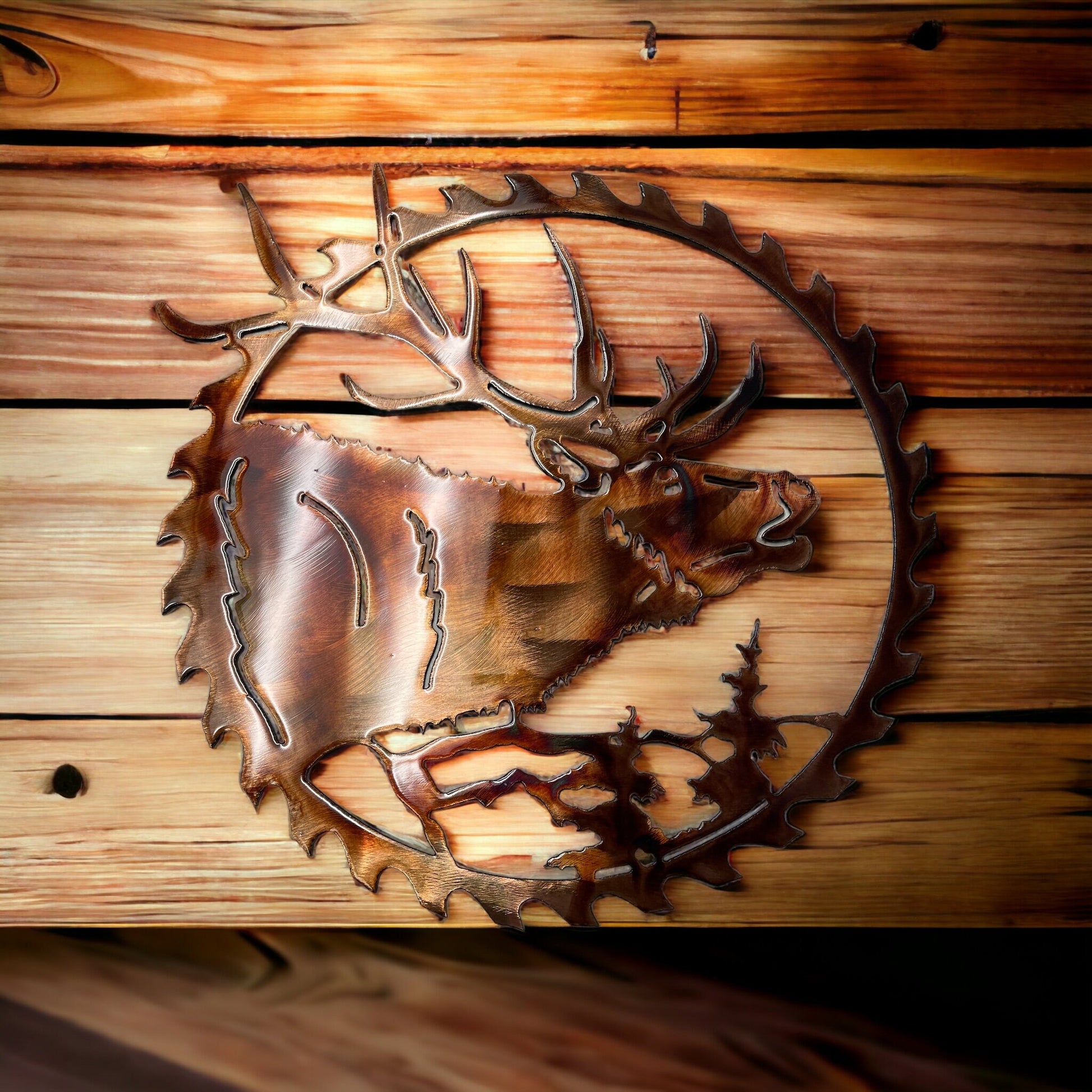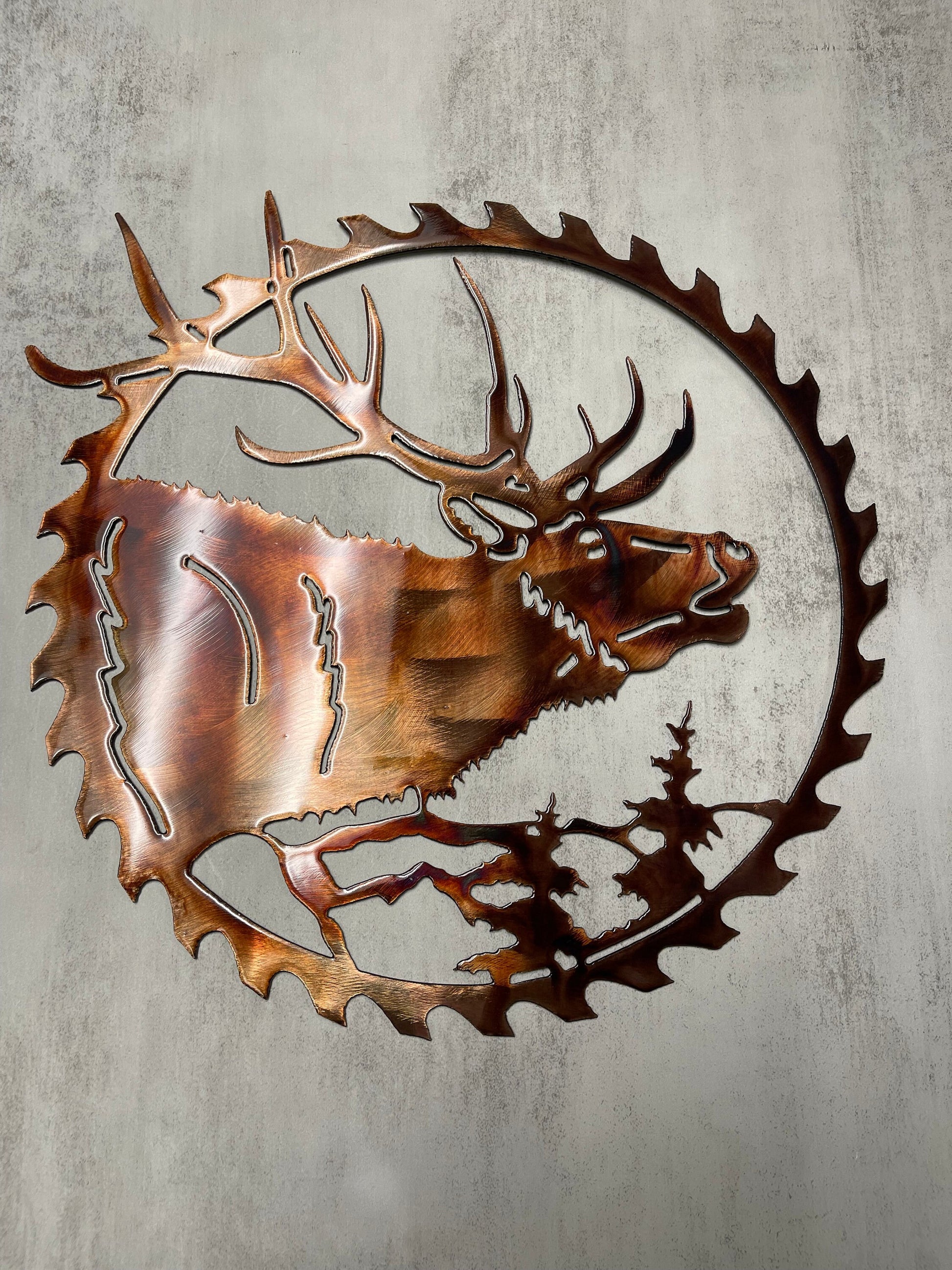 Bring the allure of nature indoors with the captivating Elk Saw Blade Metal Art. Add a touch of wilderness to your home decor today!