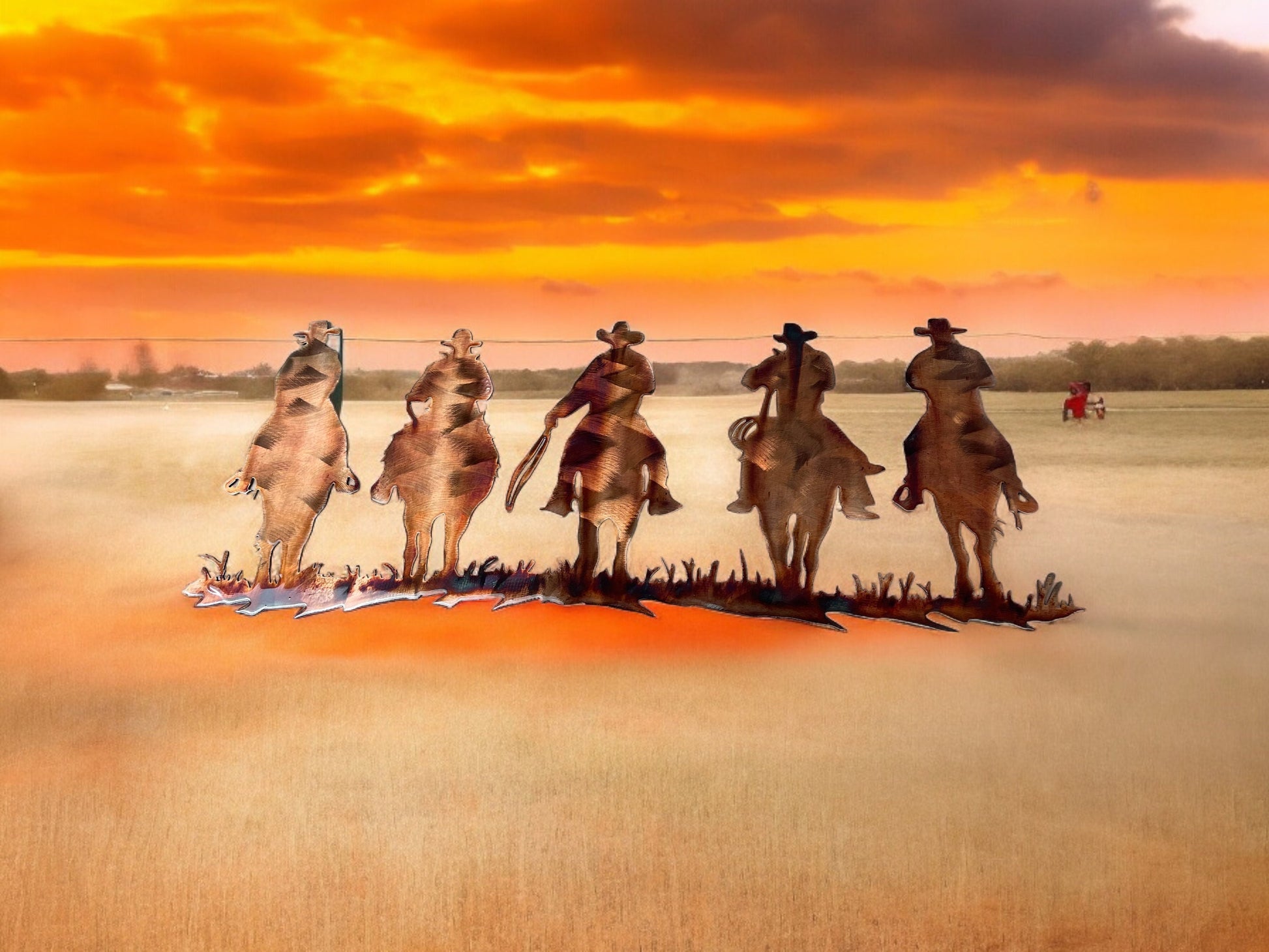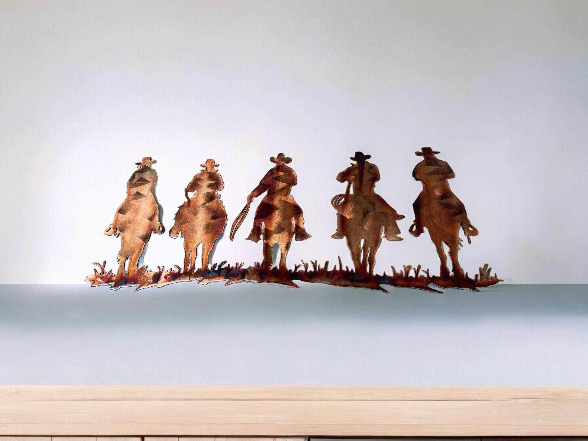 Equestrian Metal Wall Art - Copper and Bronze Plated - Five Riding Horsemen