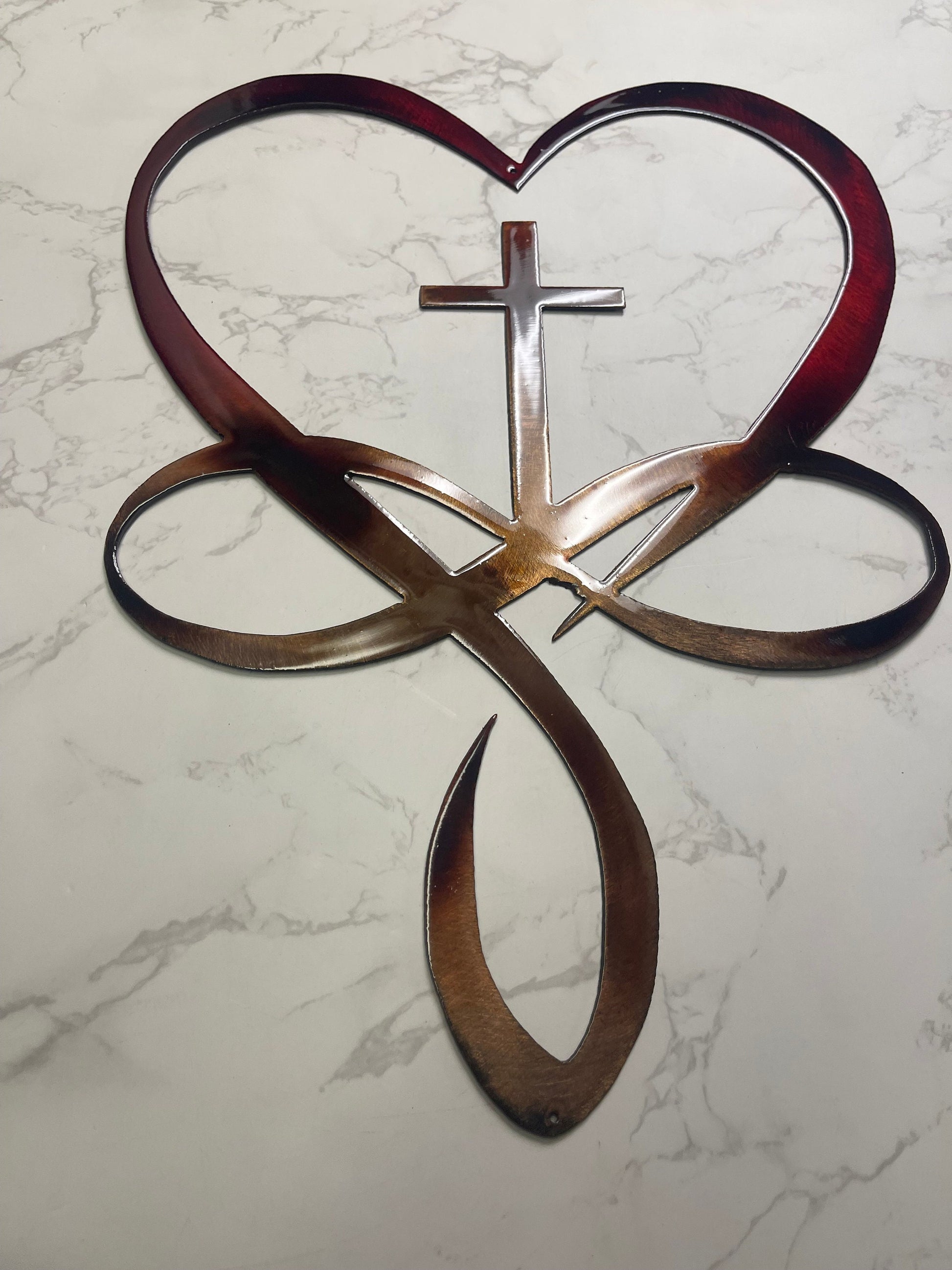 Add a touch of eternal beauty and profound symbolism to your surroundings with our Infinity Heart Cross Metal Wall Art. Order now and let its presence radiate love and faith in your home.