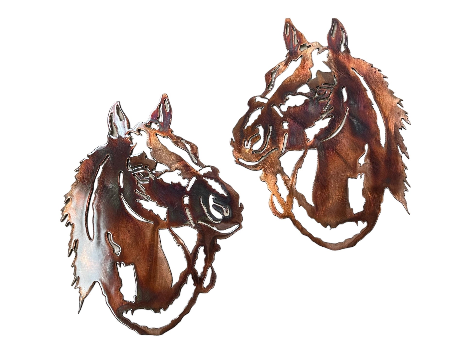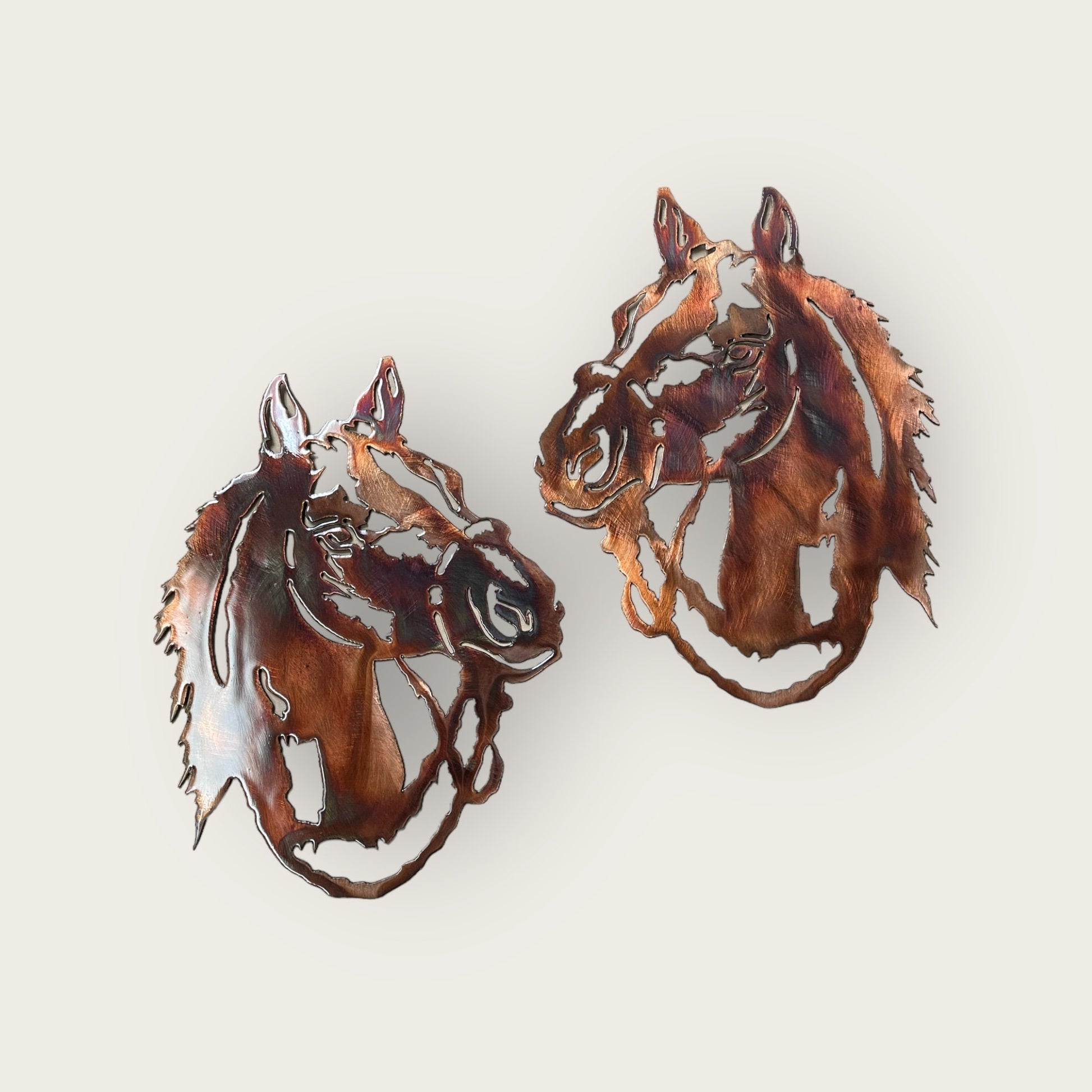 Experience the Beauty of Equine Elegance - Graceful Horse Head Metal Wall Art Mirrored Pair