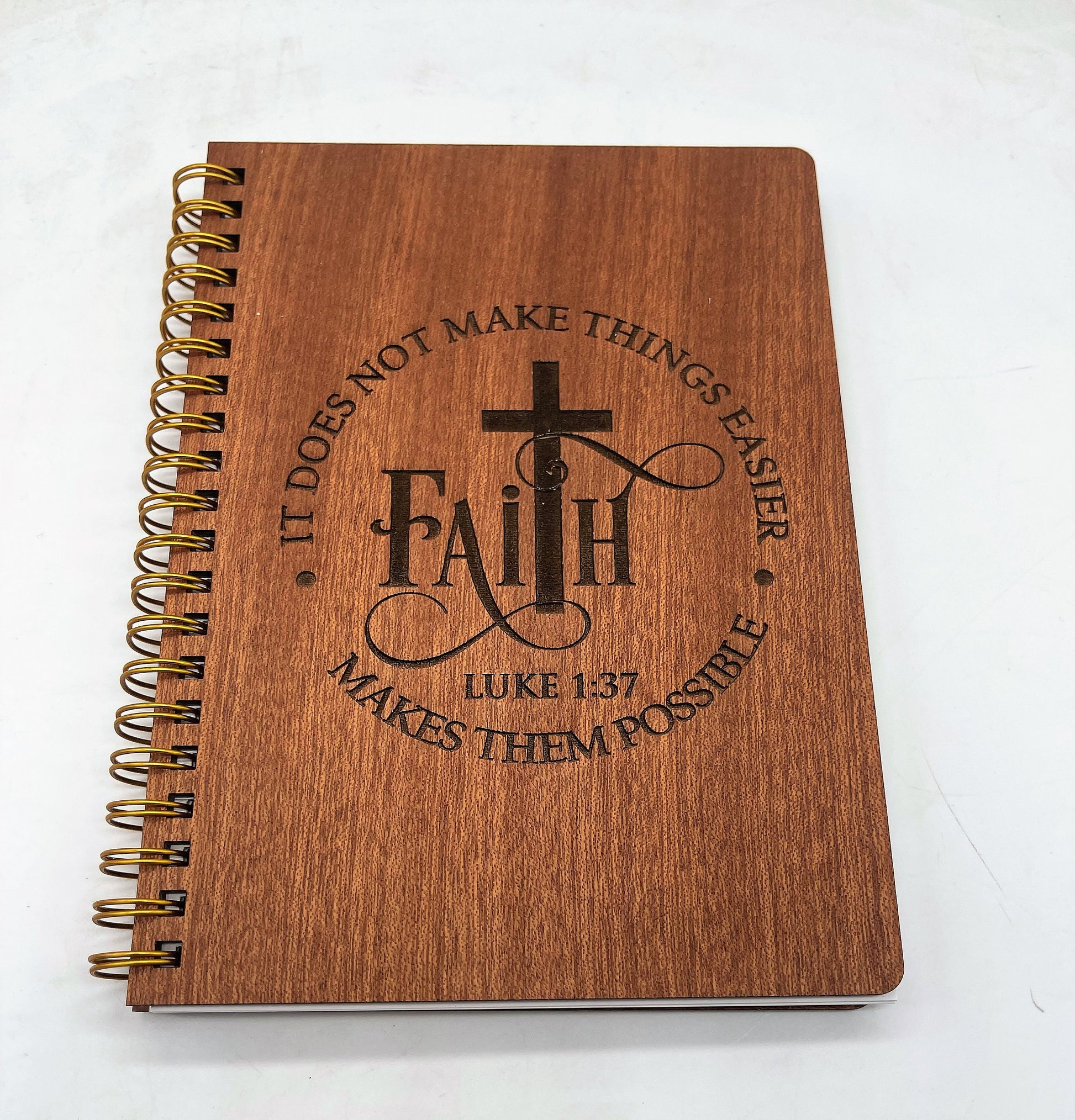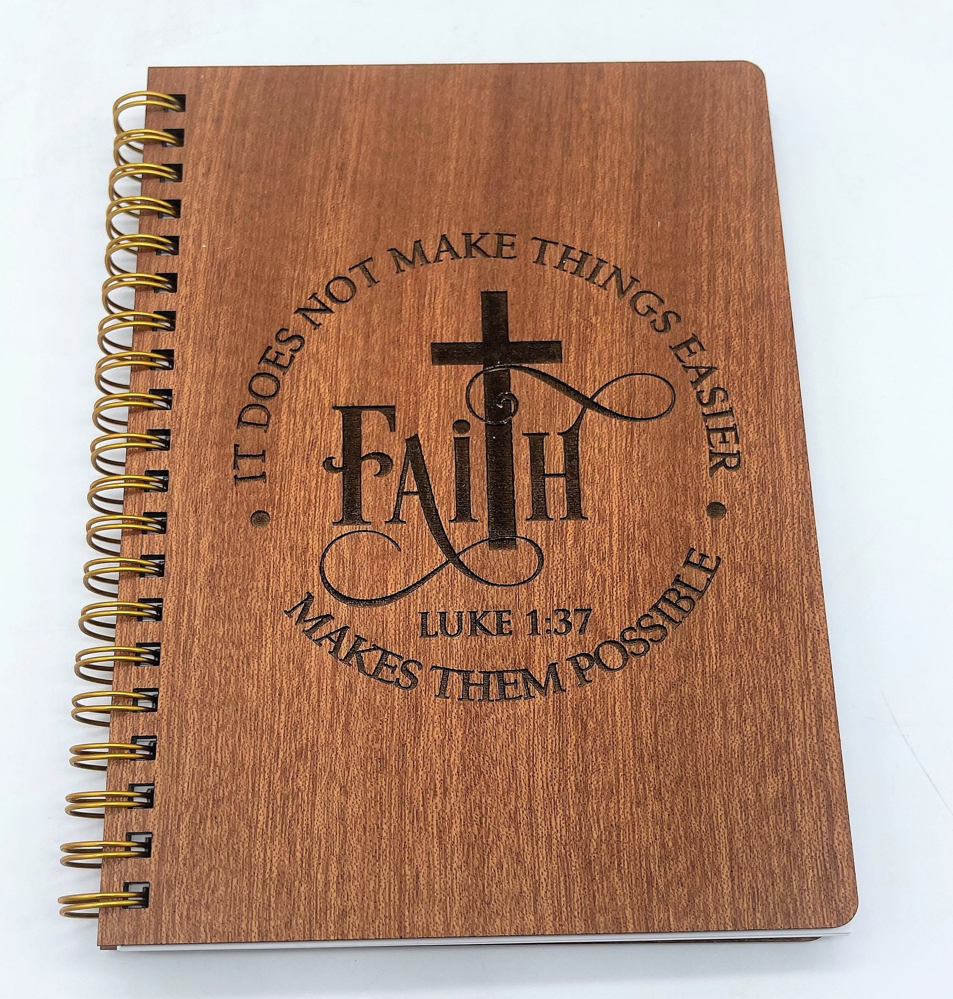 Faith - Luke 1:37 - Engraved Wooden Notebook