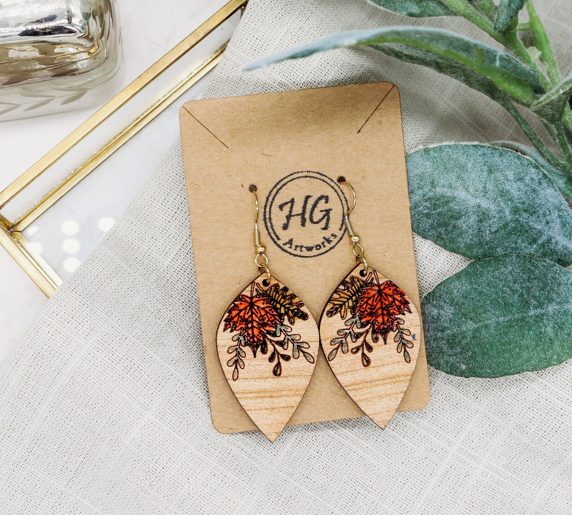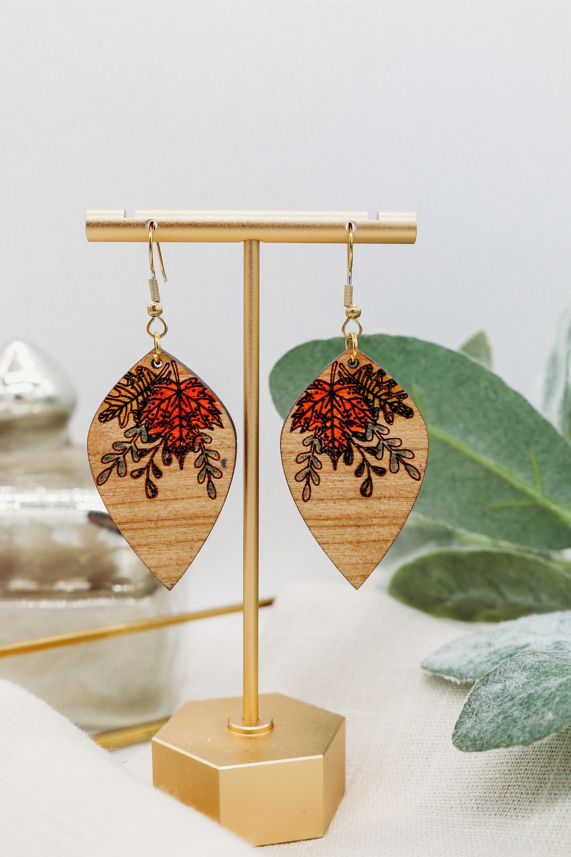 Fall Floral Swag Earrings laser cut on wood and hand painted