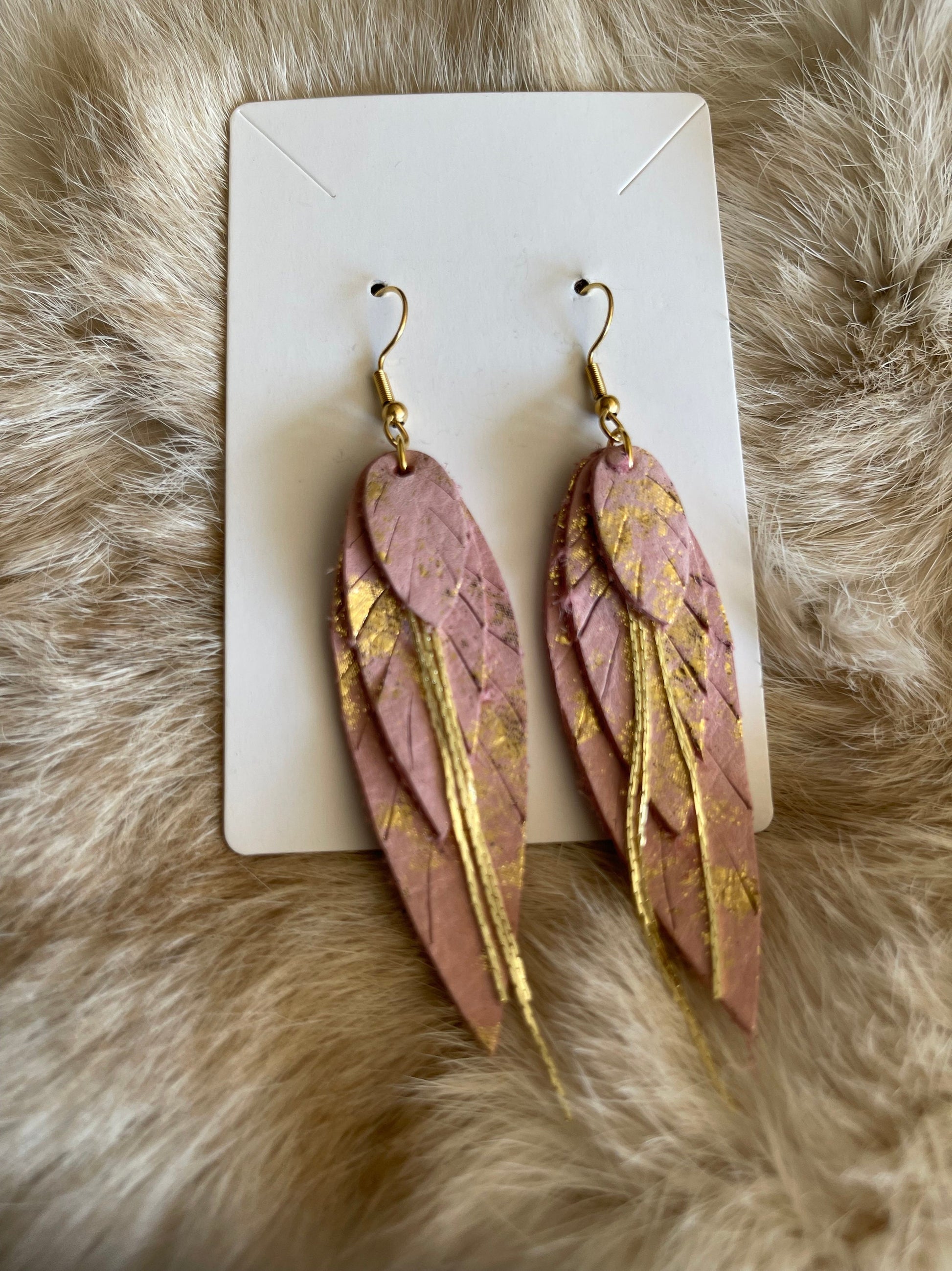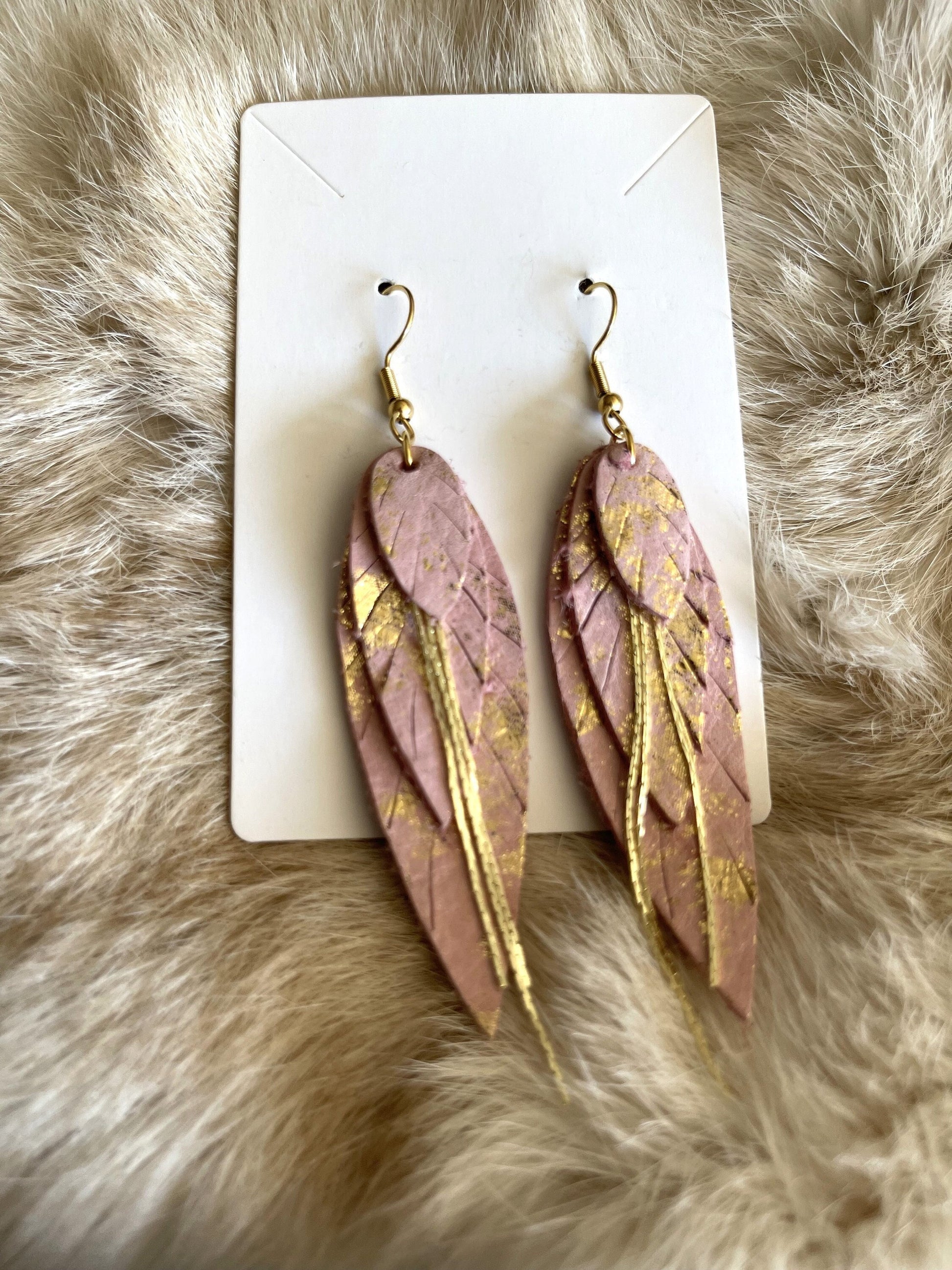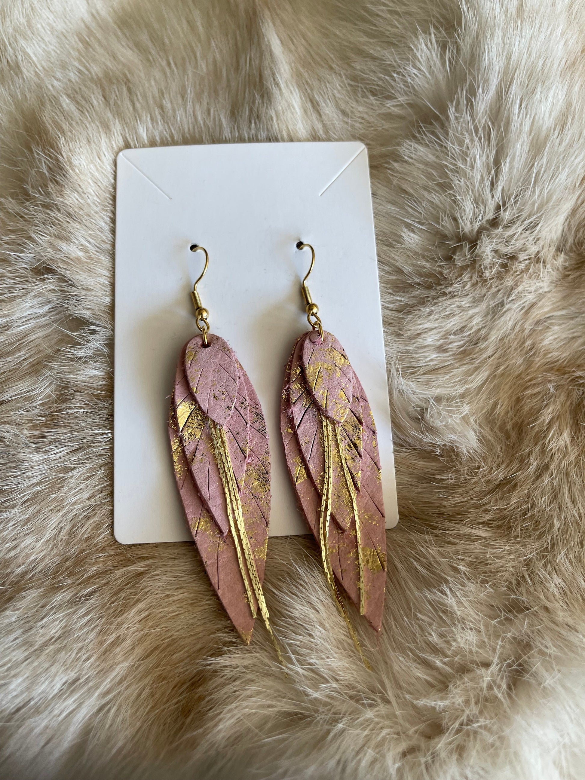Indulge in the soft elegance of our Feathered Pink Genuine Leather Layered Earrings, meticulously handcrafted to elevate your style. These stunning earrings feature delicate layers of genuine pink leather, exuding a subtle yet captivating charm that effortlessly complements any look. The hypoallergenic hardware ensures a comfortable fit for even the most sensitive ears, allowing you to enjoy these statement earrings without any worries. Whether it's a casual outing or a special occasion, these earrings are designed to add a touch of sophistication and playfulness to your ensemble. Embrace the beauty of quality craftsmanship and style with these exquisite earrings today!