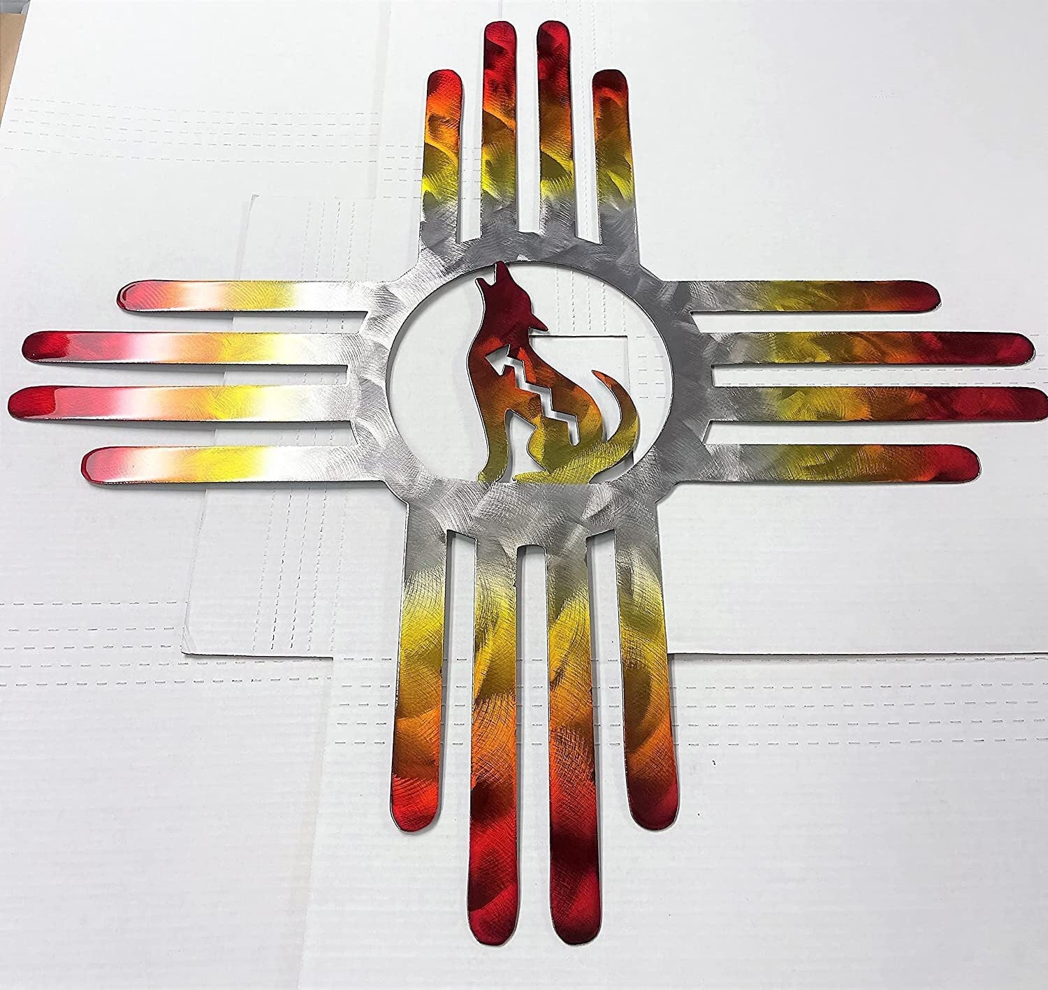 Add a bit of southwest flair to your home or office with this handcrafted piece featuring a Zia with Howling Coyote depicted in the middle. This piece will brighten up any room to display your culture in a tasteful and beautiful way.