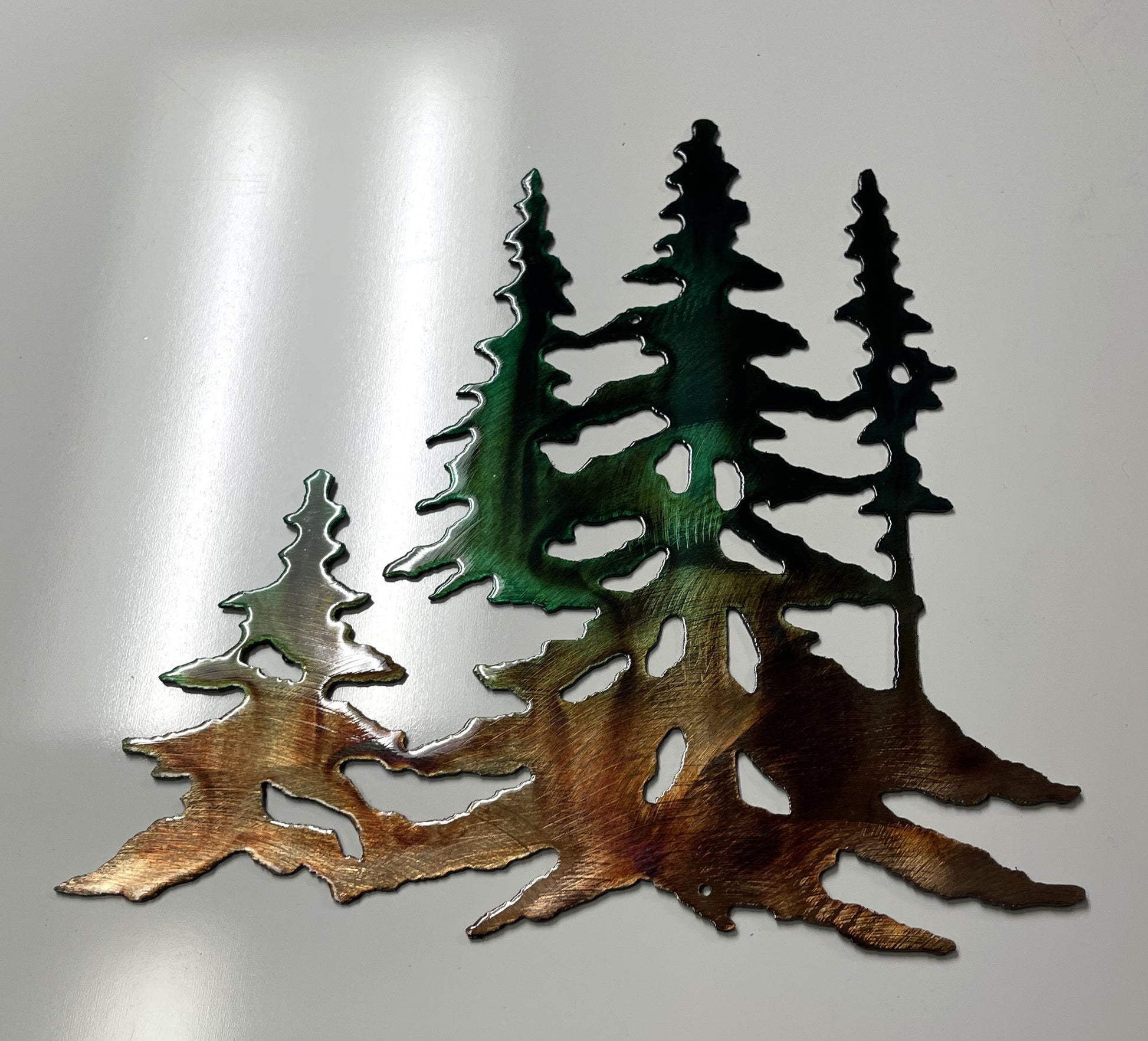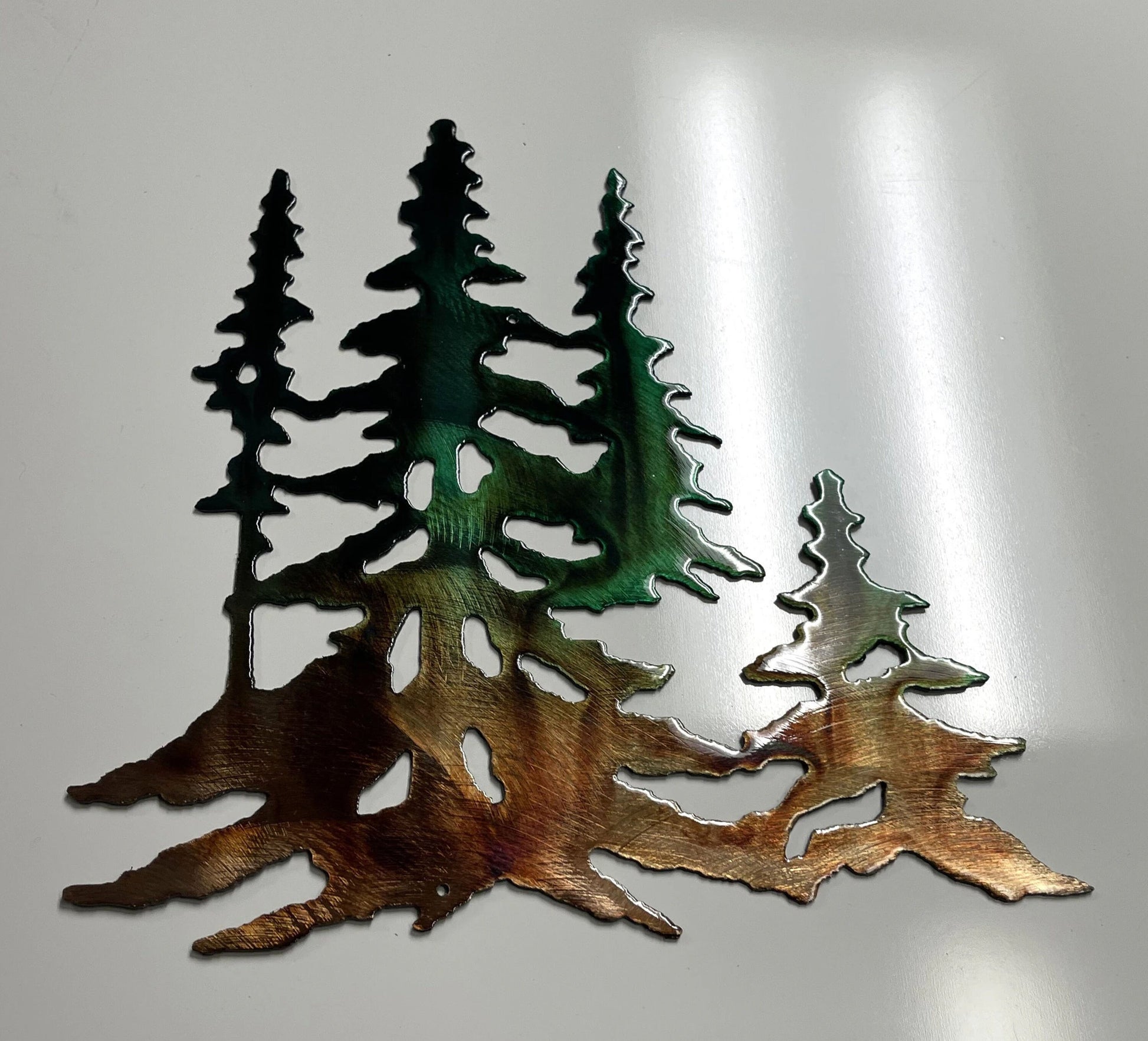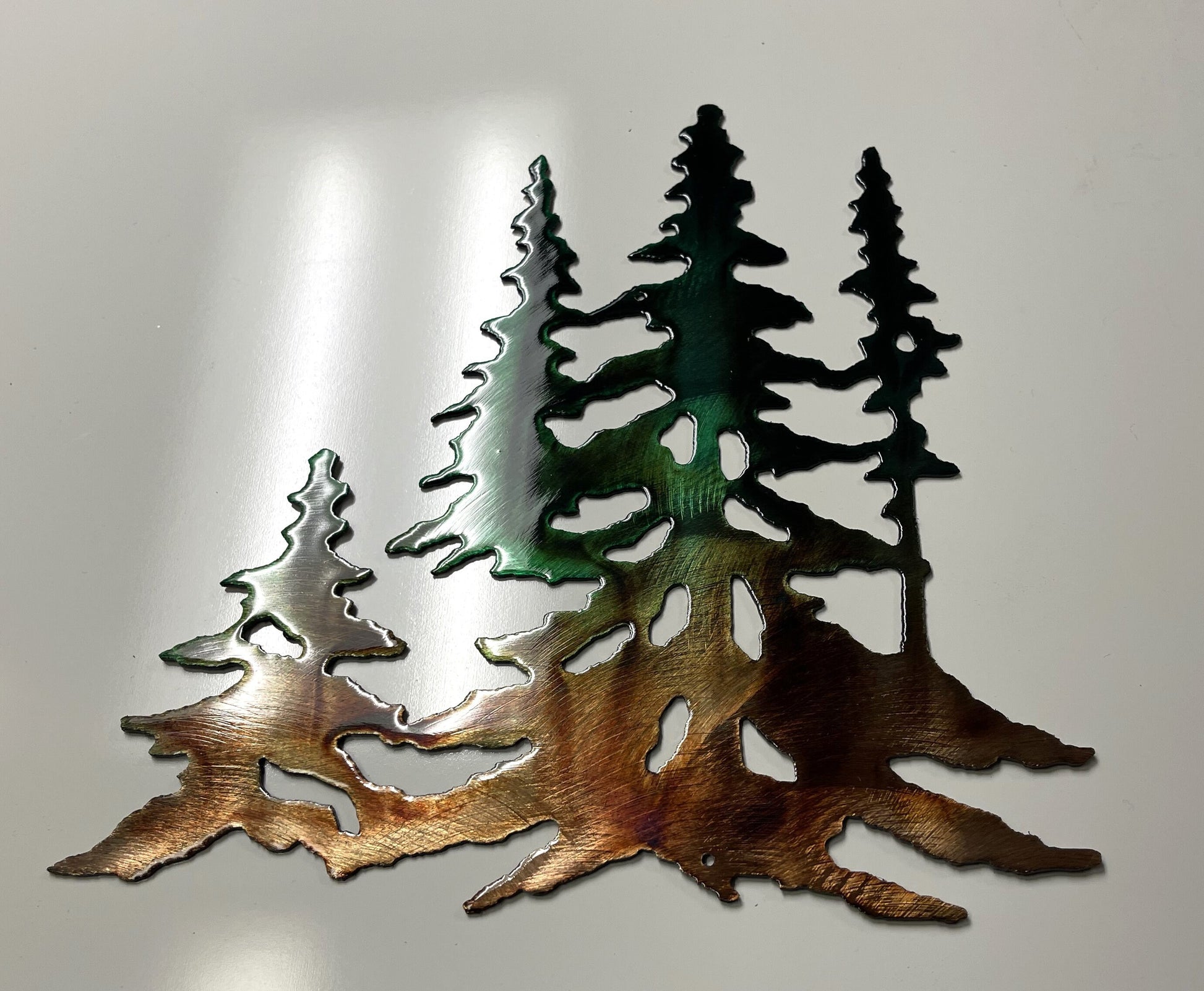 Forest Trees in copper Metal Wall Art Decor Green Marbled