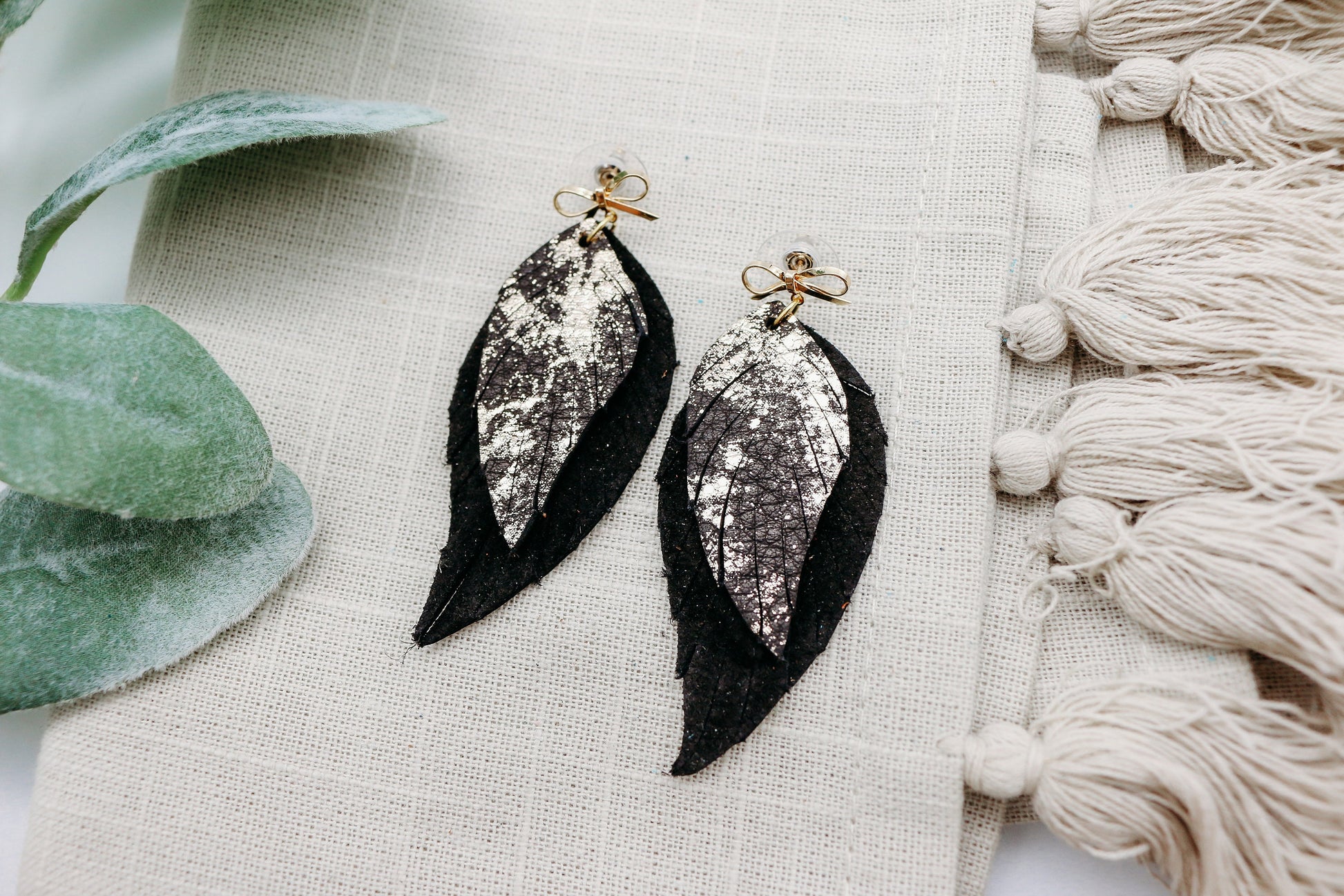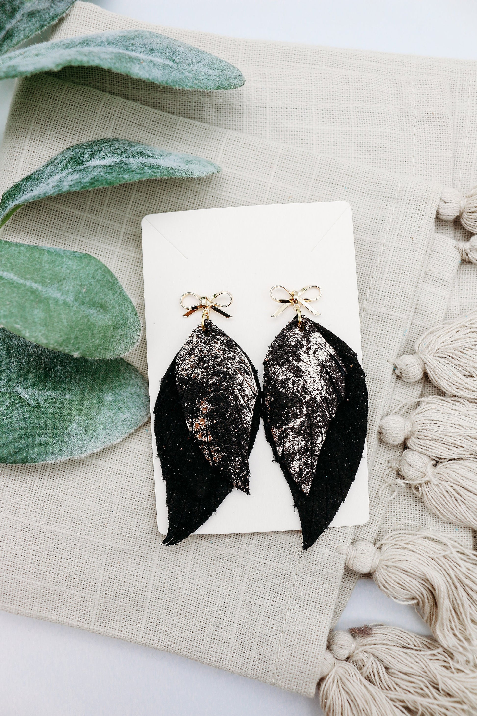 Elevate your style with our exquisite Gold Metallic Leather Feathered Earrings. Crafted with meticulous attention to detail, these stunning earrings feature delicately crafted gold metallic leather feathers, adding a touch of glamour and sophistication to any ensemble. The elegant gold bow post further enhances their charm, making them a perfect accessory for both formal occasions and everyday wear. Lightweight and comfortable, these earrings are designed to make a statement without compromising on ease. Embrace luxury and grace with these enchanting earrings and add a dash of golden glamour to your collection today!